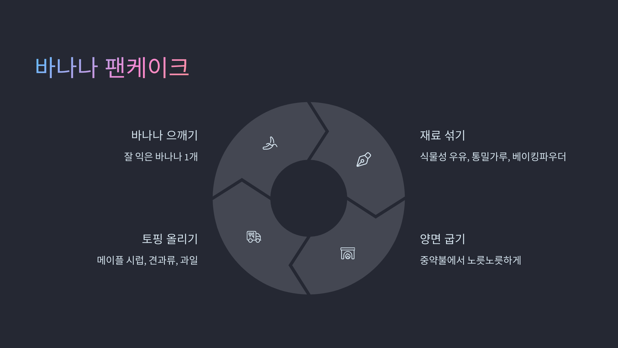 바나나에는 자연 당분과 수분이 많아 부드럽고 촉촉한 팬케이크를 만들 수 있습니다.