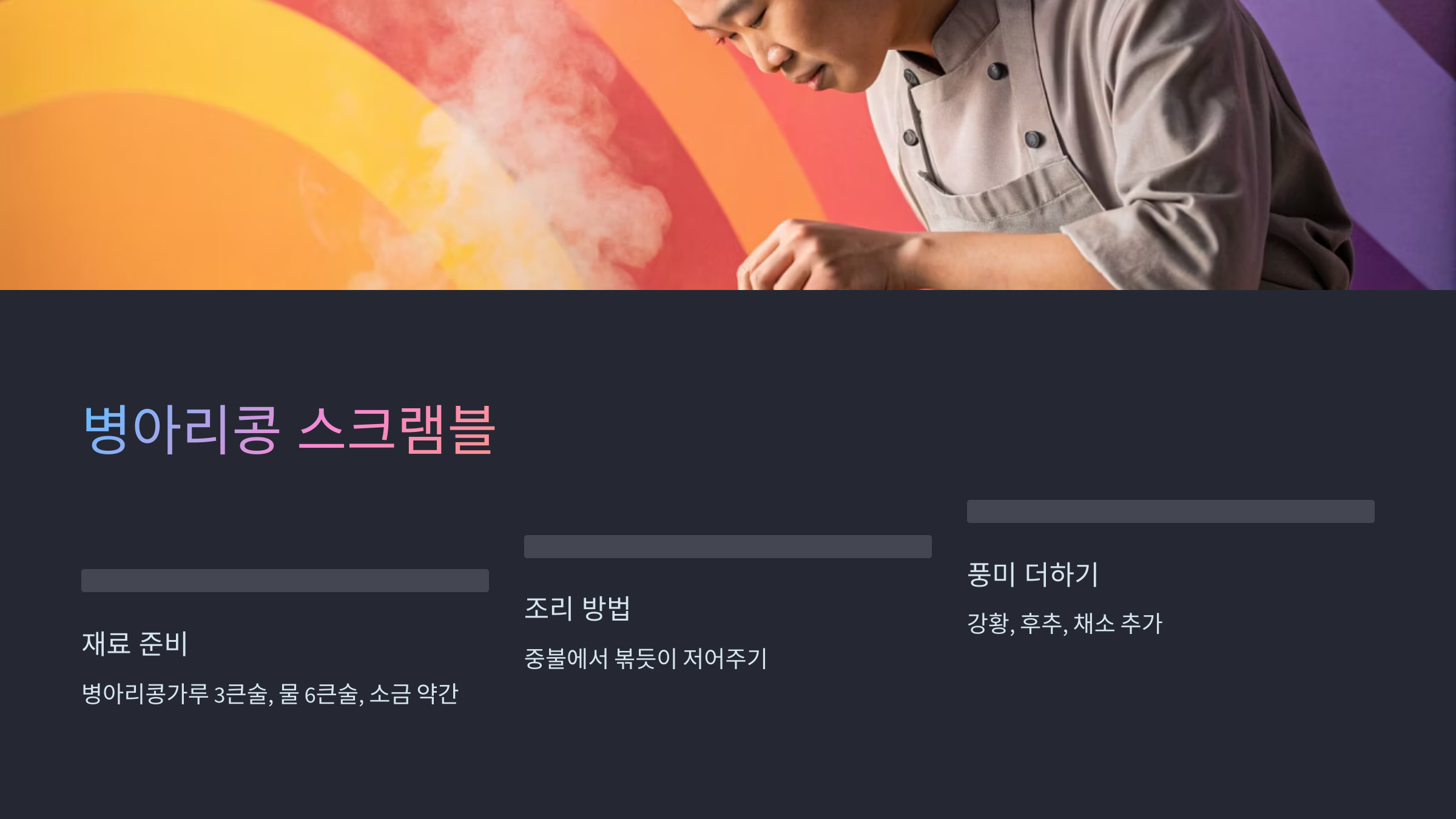 | 두부 | 부드러움, 고단백 | 오믈렛, 달걀찜 대체 |