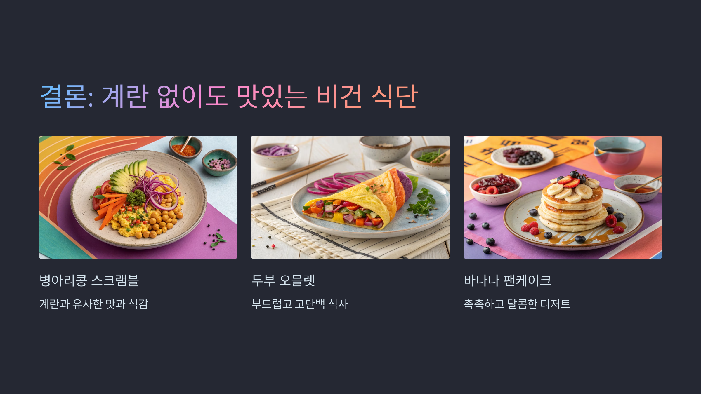 결론: 계란 없어도 비건 식단은 충분히 맛있다