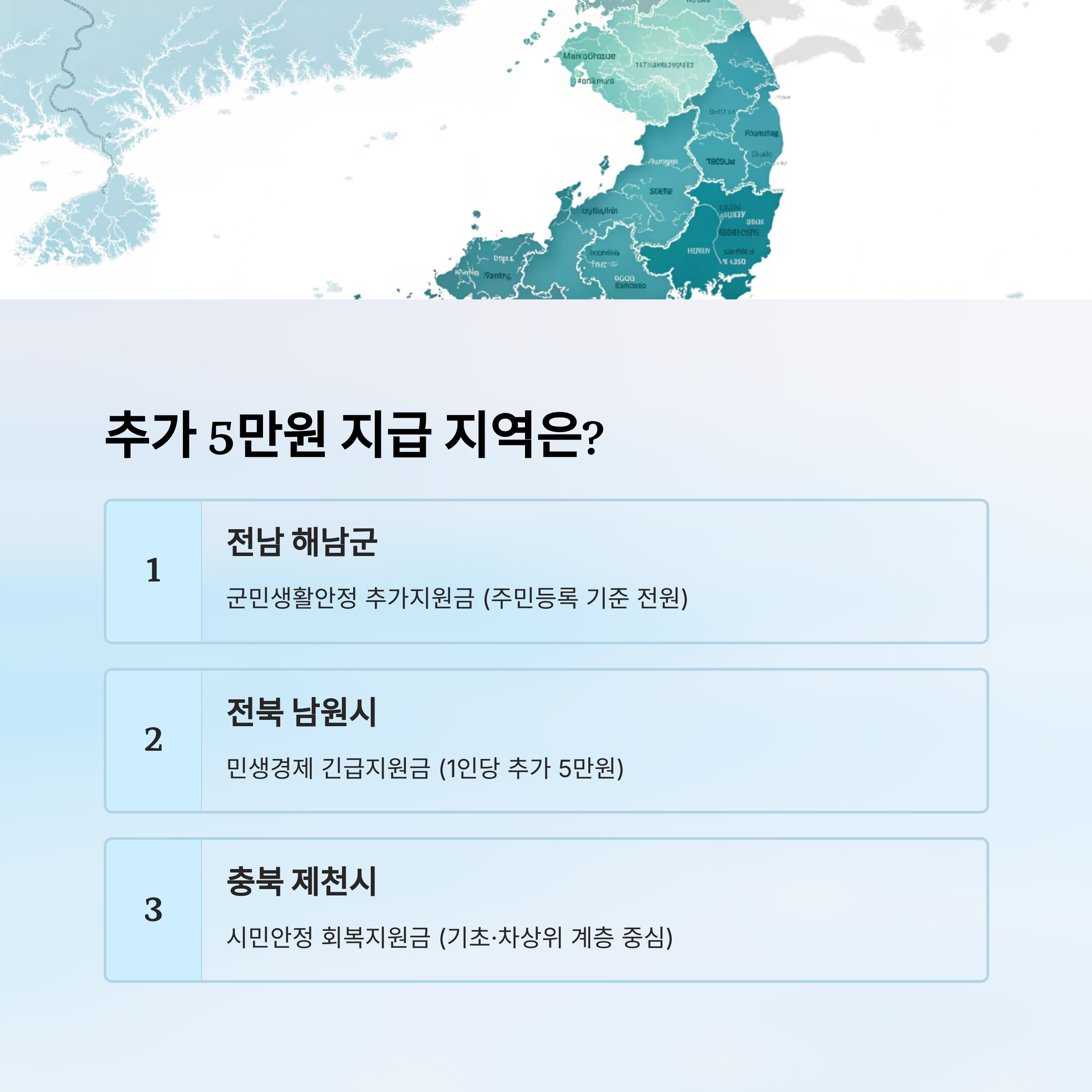 아래 지역은 자체 예산을 통해 정부 지원금 외 추가 5만원을 지급합니다.