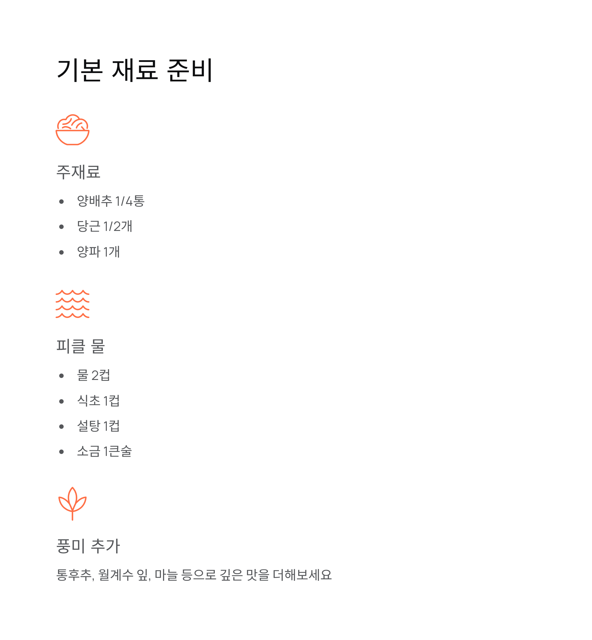 양배추 피클 요약 표
