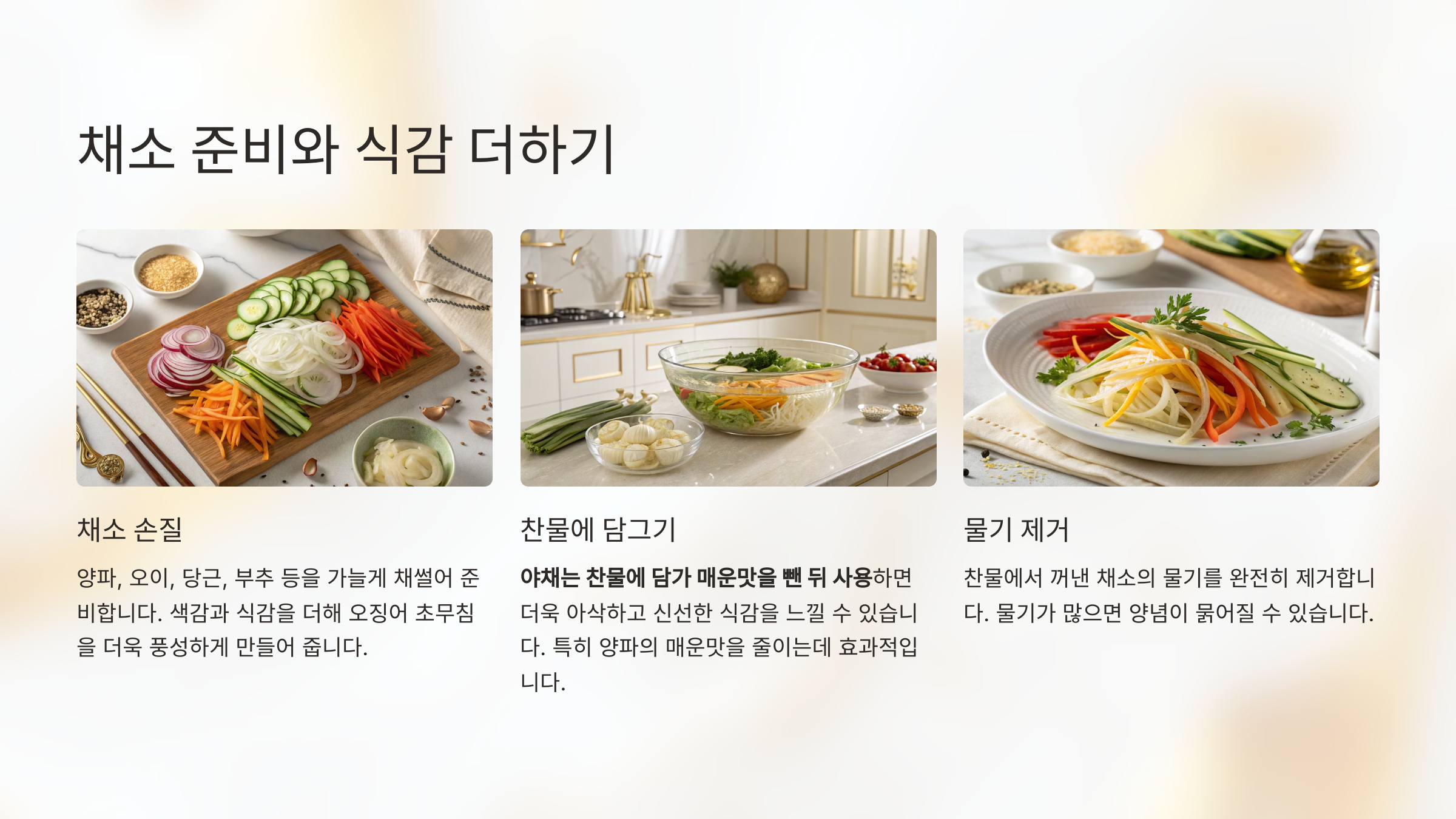 야채는 찬물에 담가 매운맛을 뺀 뒤 사용하면