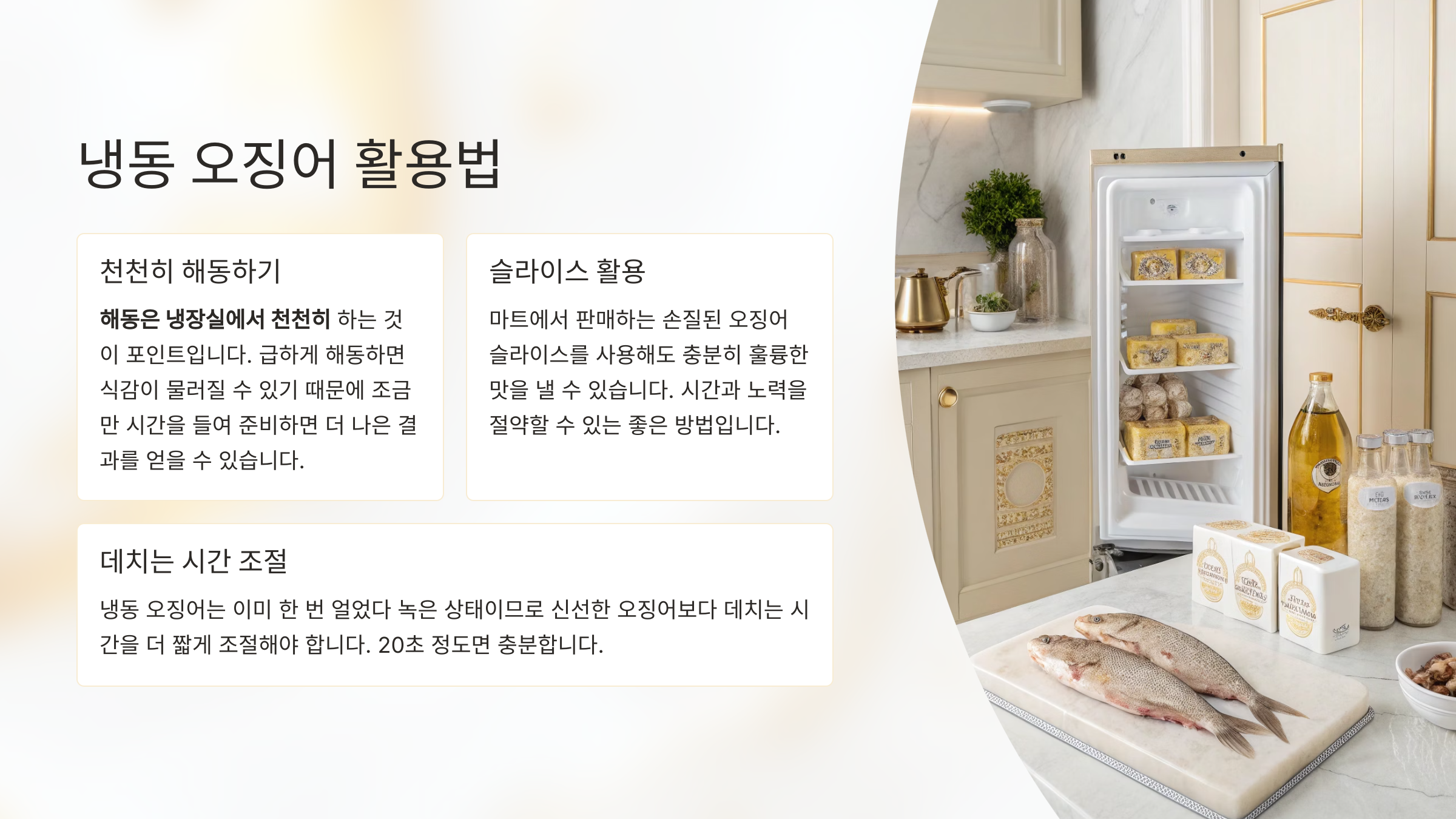 냉동 오징어나 손질된 오징어 슬라이스를 사용해도
