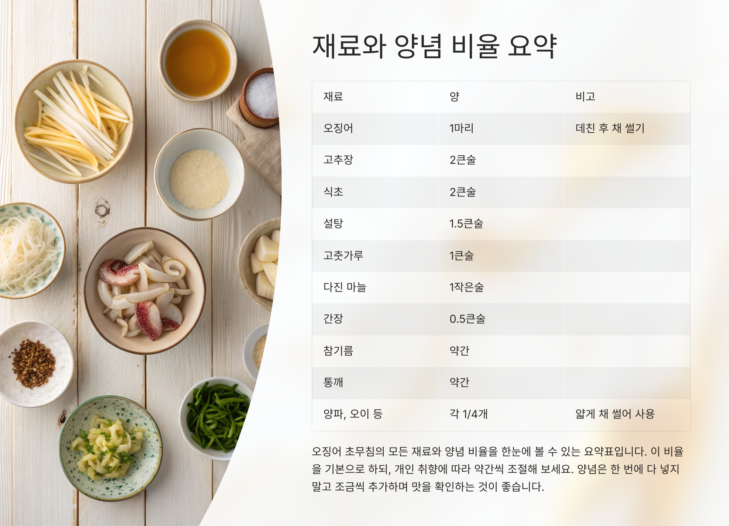 양념장은 오징어 초무침의 맛을 좌우하는 핵심 요소입니다.