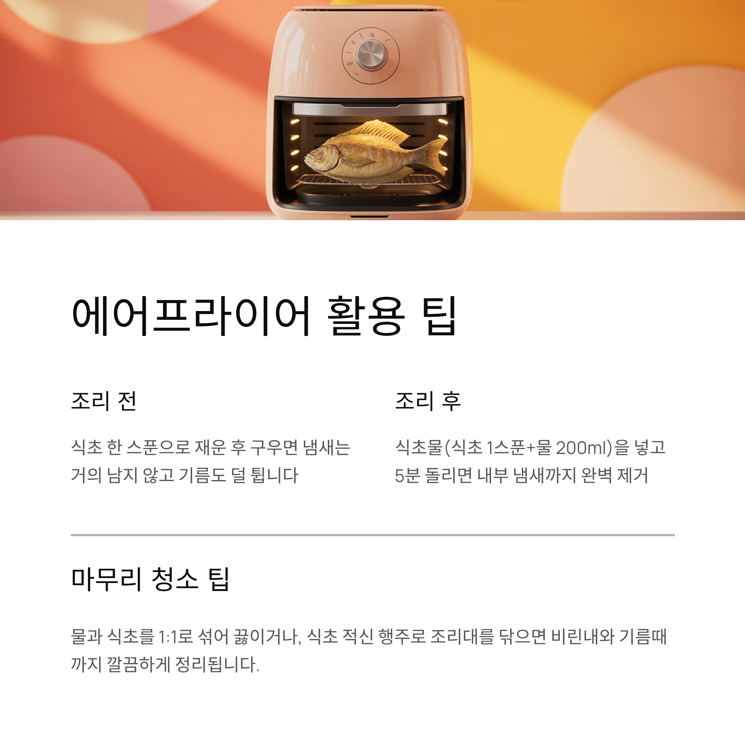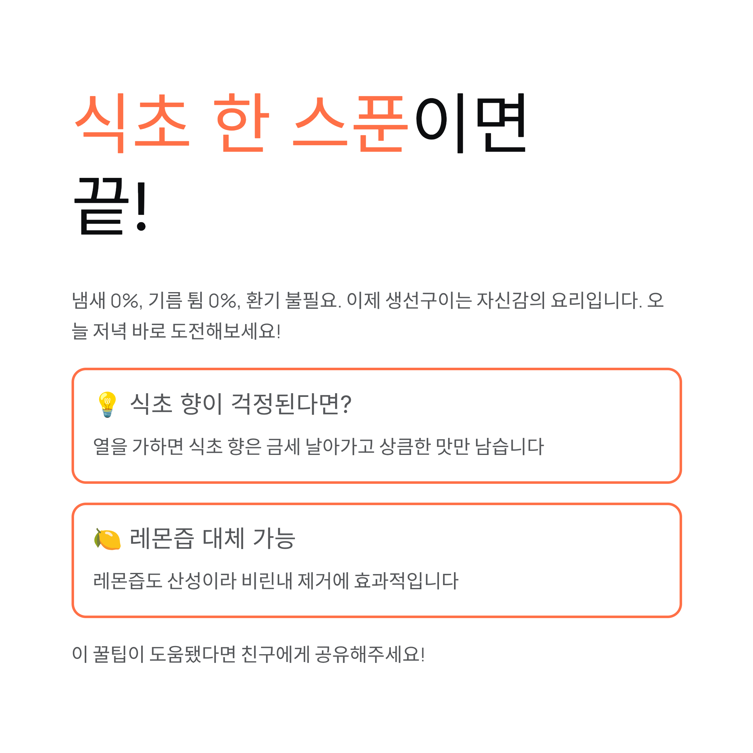 식초 한 스푼이면 냄새 0%, 기름 튐 0%, 환기 불필요.