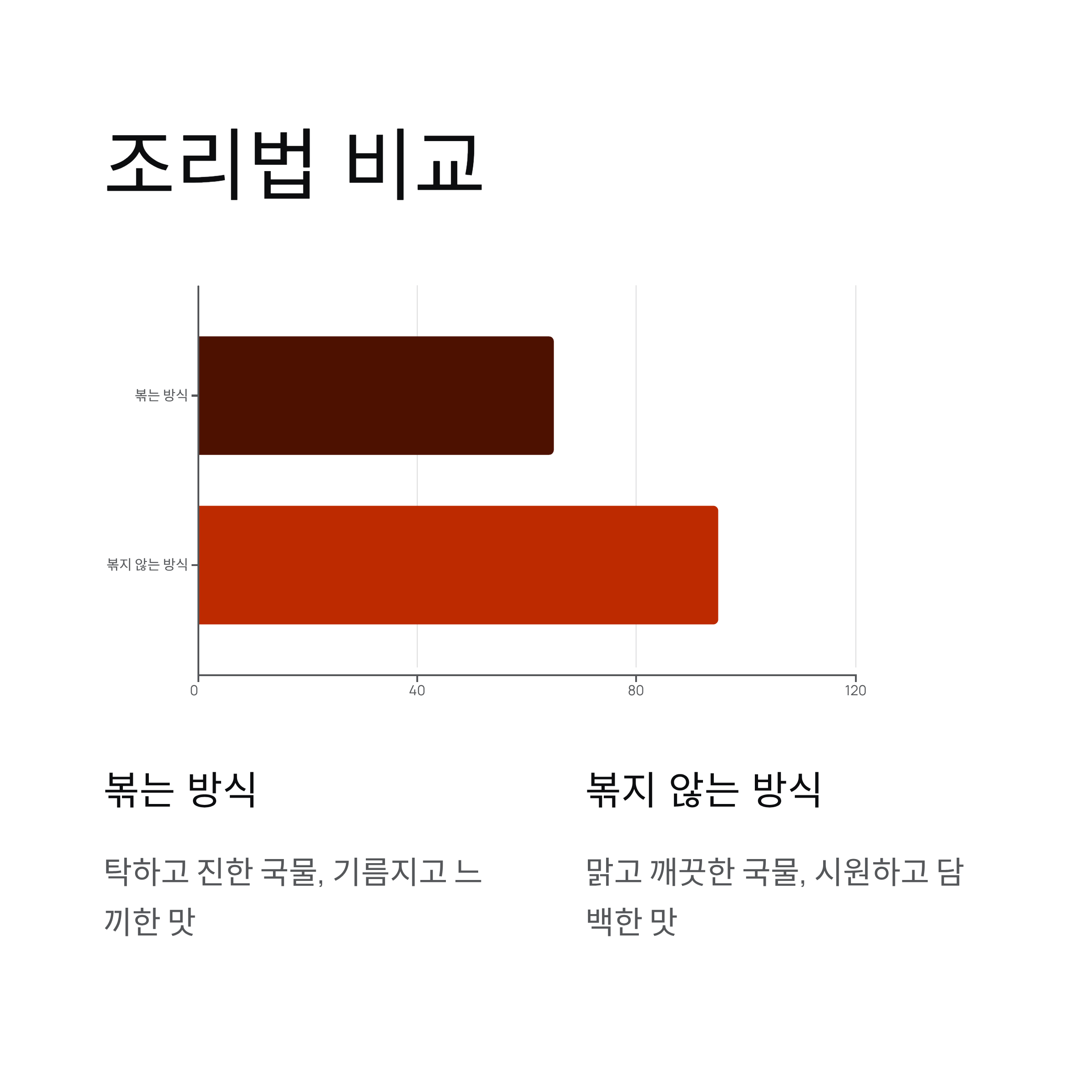 | 볶지 않는 방식 | 맑고 깨끗함 | 시원하고 담백함 | 쉬움 |