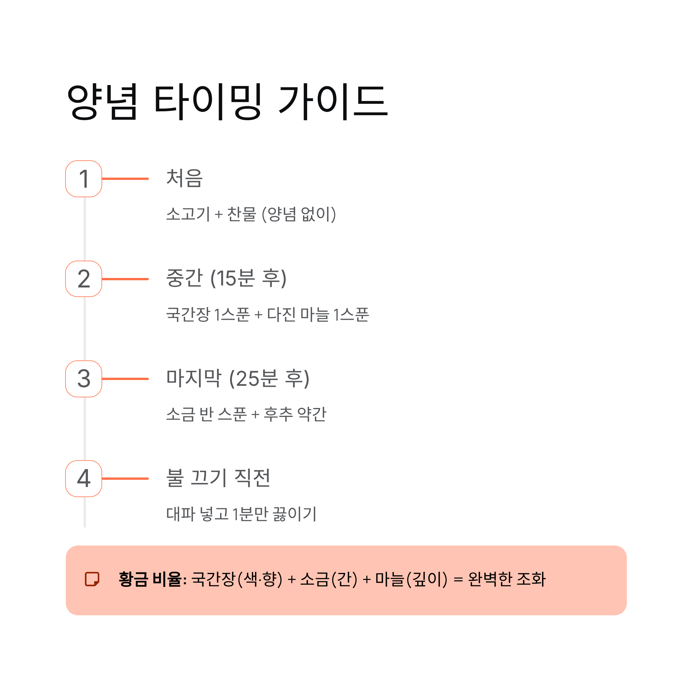 | 소금 | 간 조절 | 마지막 |