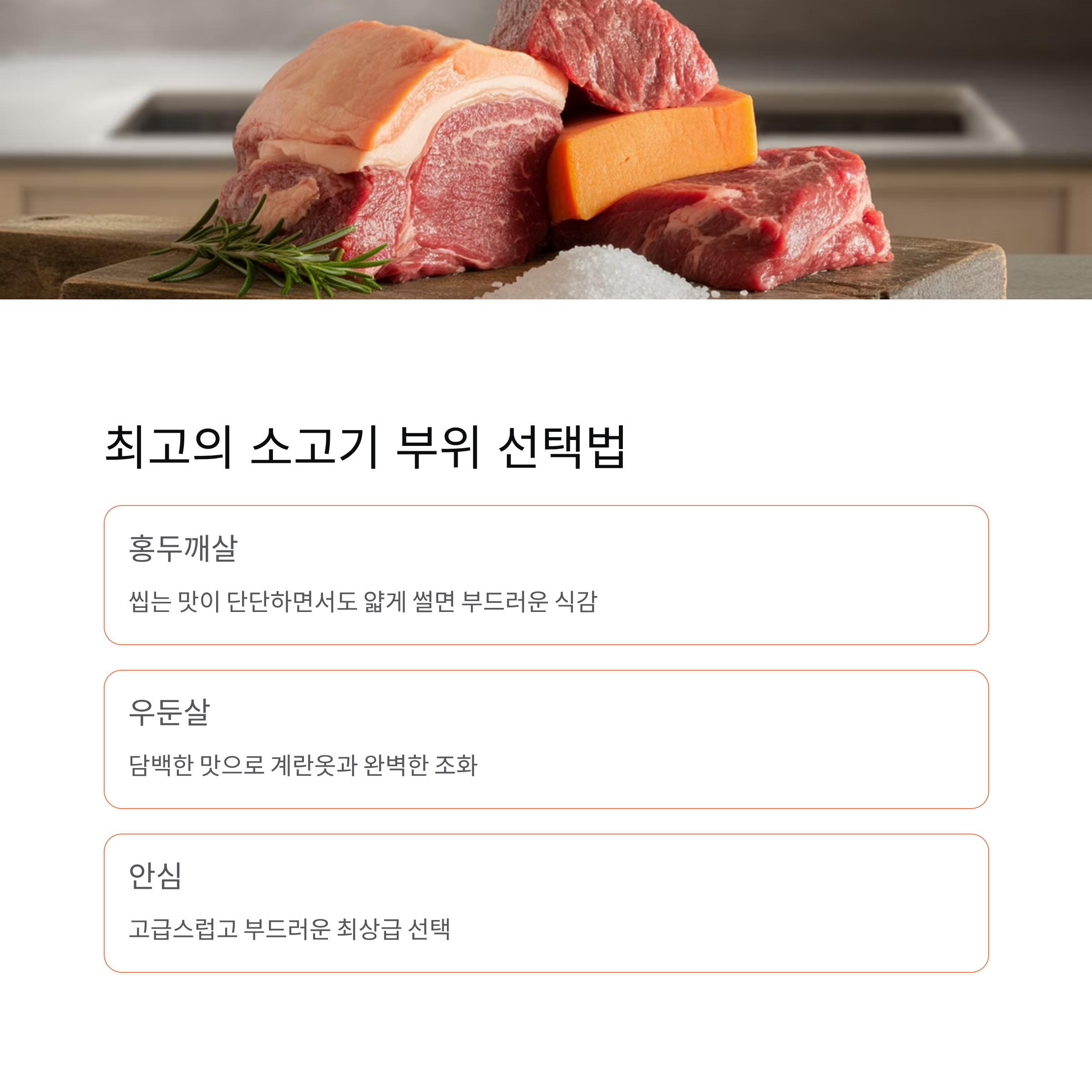 안심은 고급스럽고 부드럽지만 가격대가 조금 높은 편이니 상황에 맞춰 선택하면 됩니다.