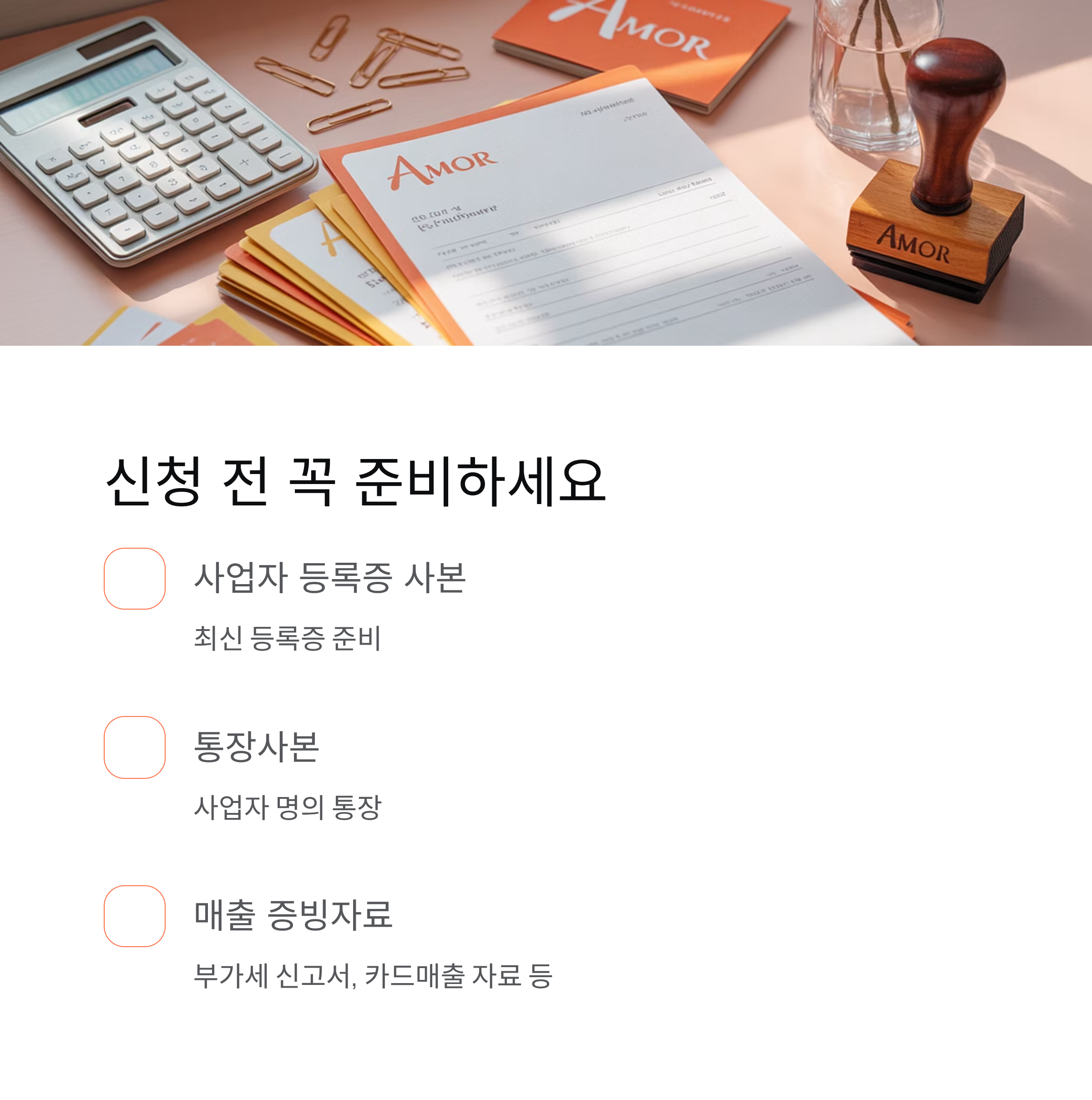 신청 전 반드시 사업자 등록증, 통장사본,