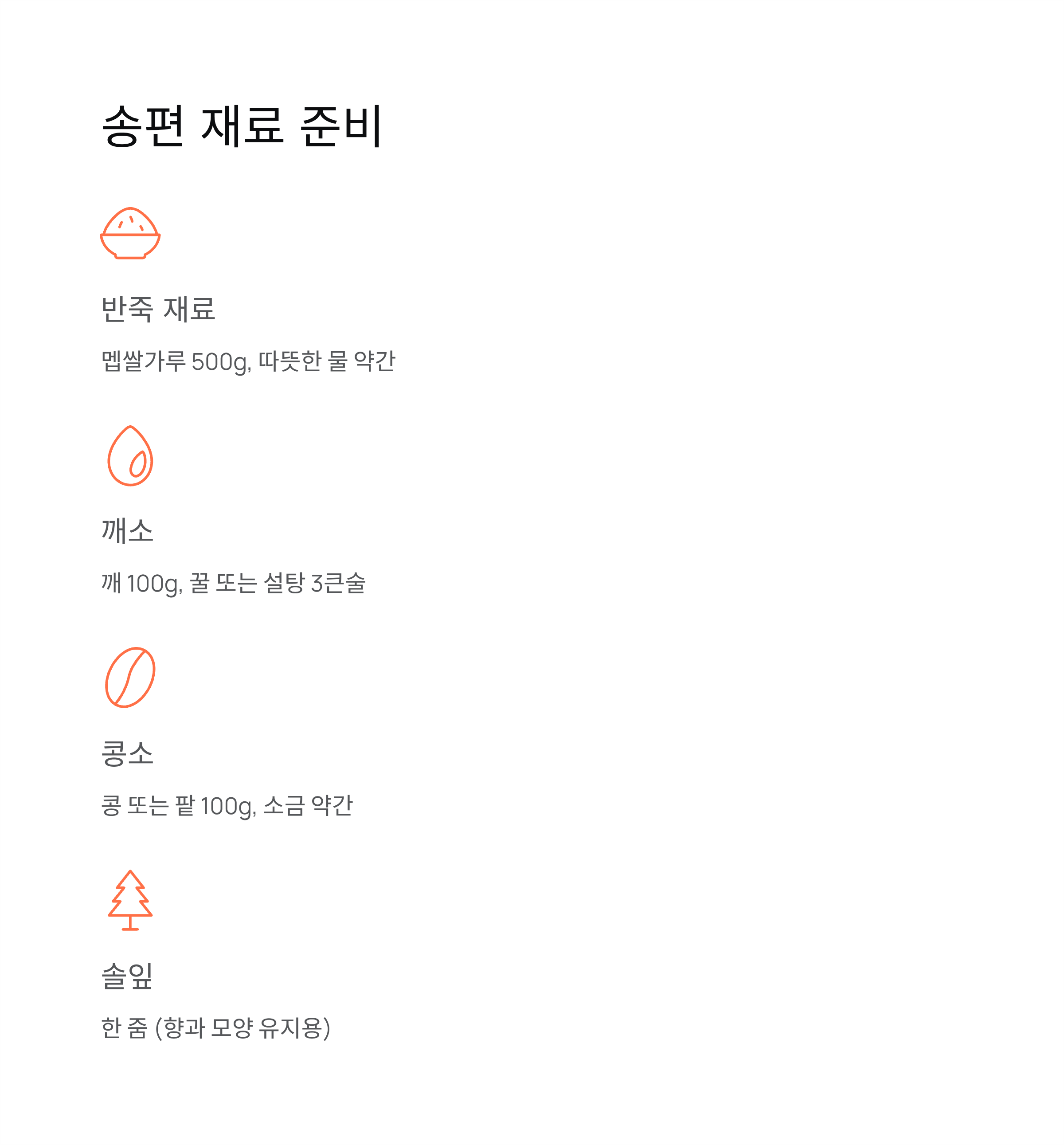 송편을 만들기 위해서는 크게 세 가지 준비가 필요합니다.