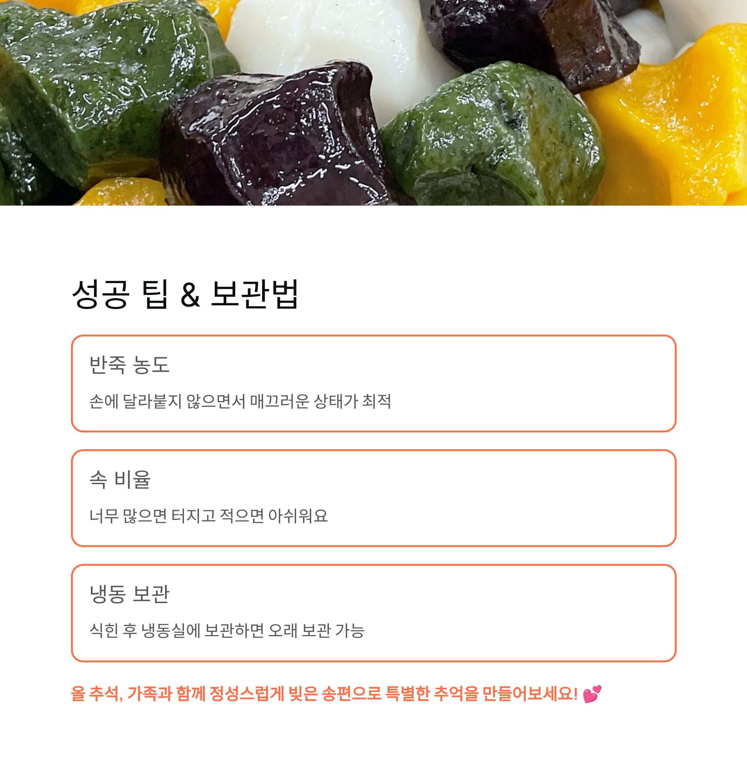 2025.10.01 - [고유의 먹거리] - 추석을 빛내는 5색 쌀가루 송편 만들기 레시피
