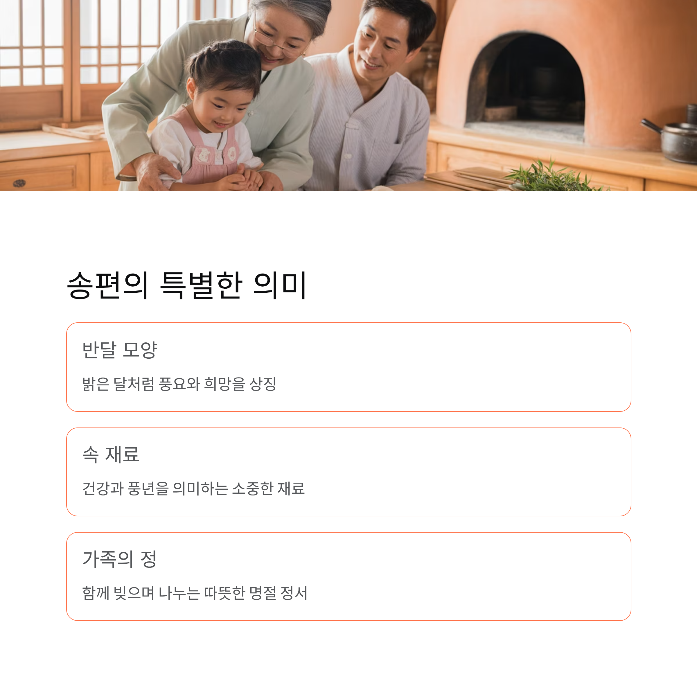 송편은 단순한 음식이 아니라 풍요와 행복을 기원하는 의미를 담은 전통 음식입니다.