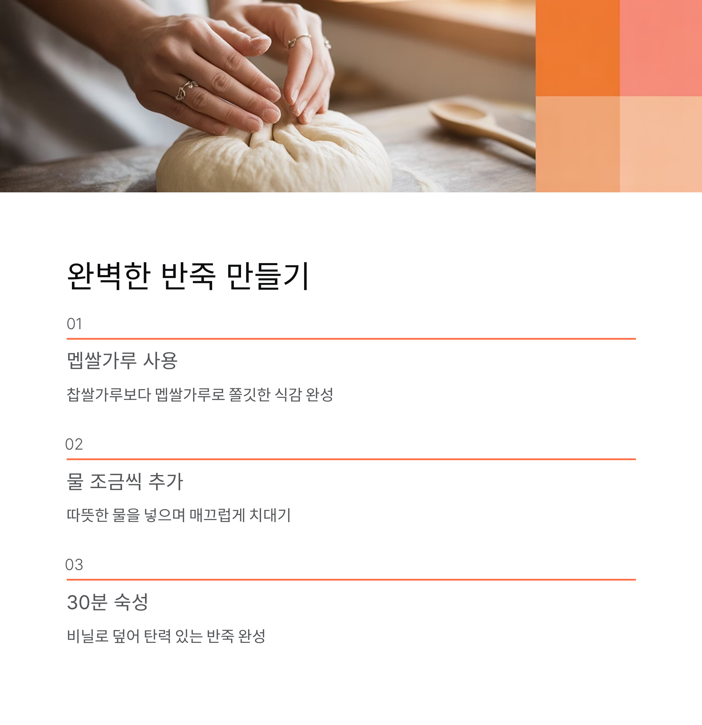 반죽은 손에 달라붙지 않으면서도 매끄러운 상태가 가장 좋습니다.