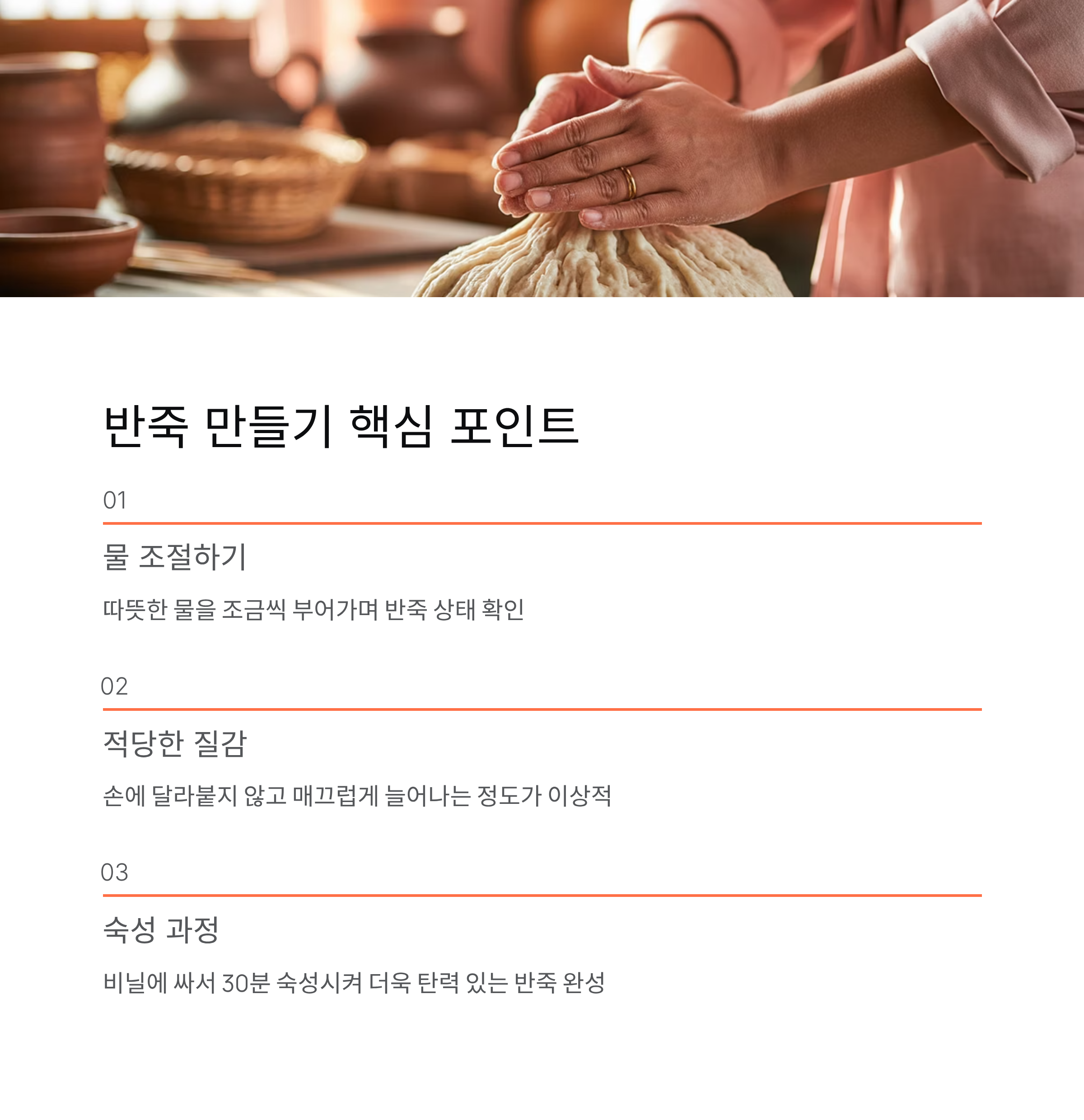 물을 한 번에 붓지 않고 반죽 상태를 확인하면서 넣는 것이 중요합니다.