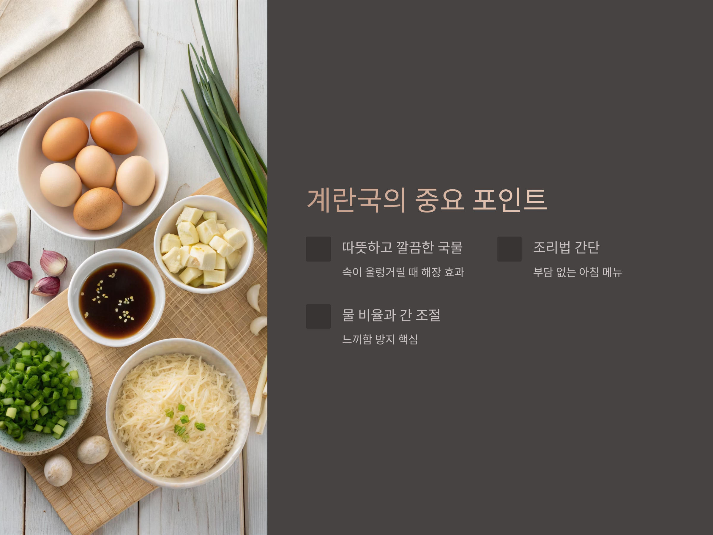 해장용 계란국, 맑고 시원하게 끓이려면 무엇이 중요할까요?