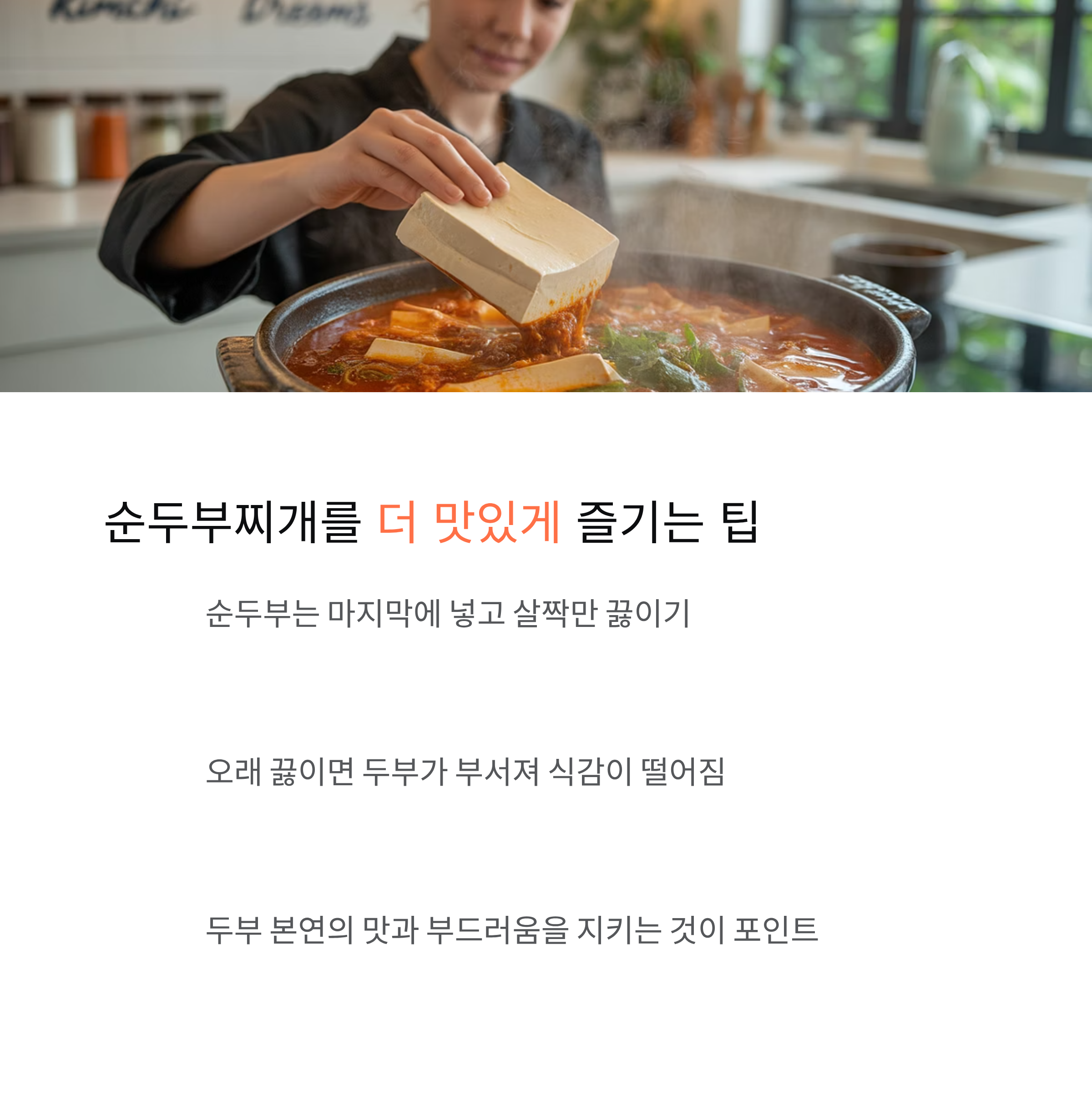 순두부찌개를 끓일 때 두부를 너무 오래 끓이지 말고