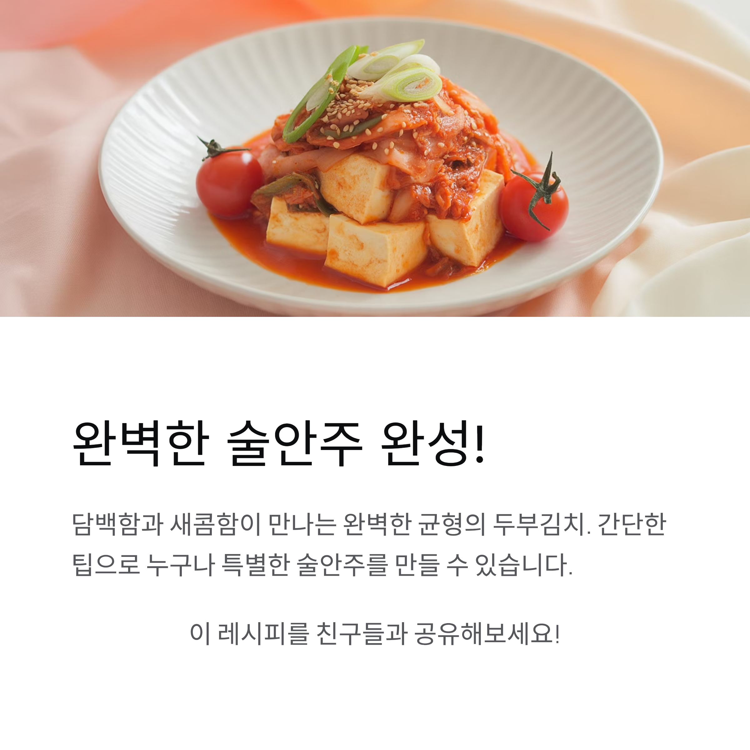 담백한 두부와 새콤한 김치가 만나 완벽한 술안주로!