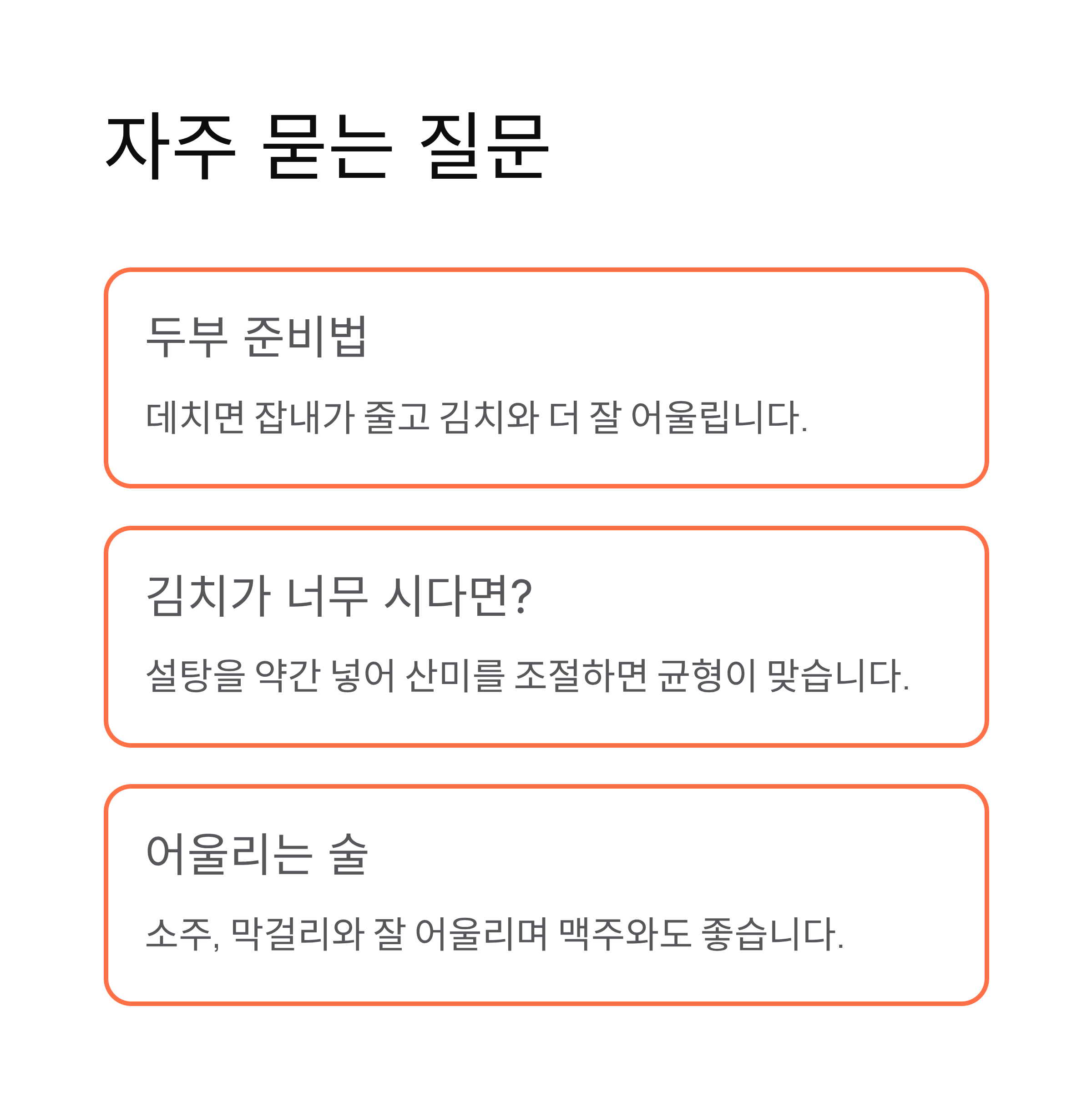이번 글에서는 술안주로 두부김치를 새콤하게 만드는 방법과 조리 팁을 정리해 보았습니다.