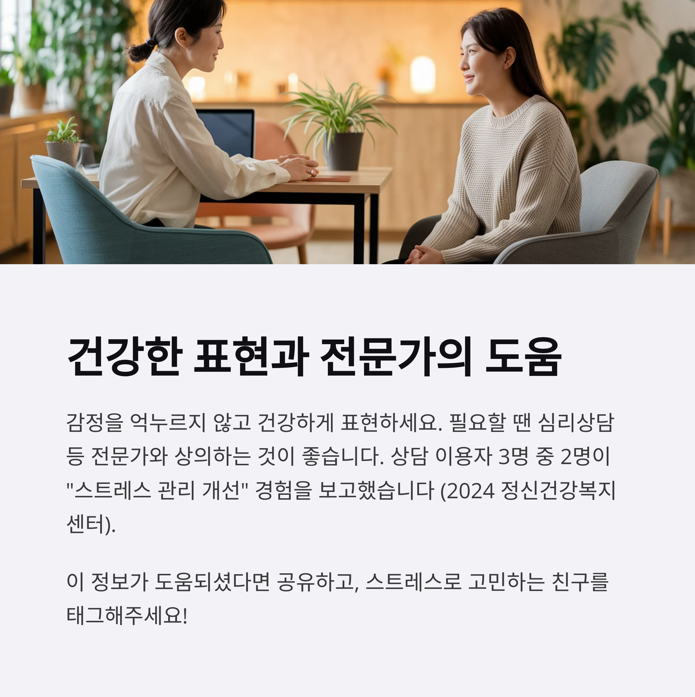 | 해소의 중요성 | 장기적 스트레스는 면역 저하, 우울감 등으로 이어질 수 있음 |