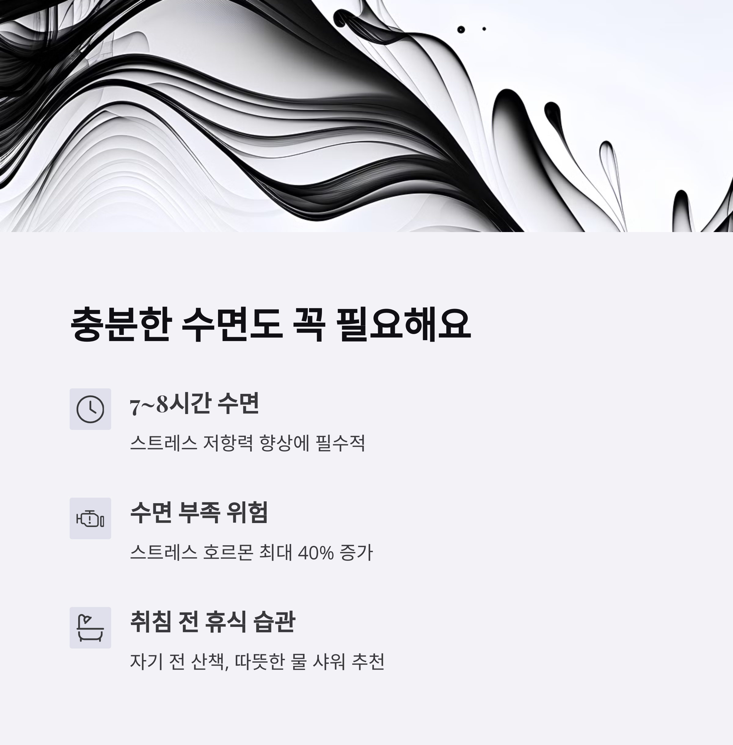 그 외에도 취미 활동, 명상, 자연과의 교감, 규칙적인 수면 등 다양한 방법이 있습니다. 핵심은 자신에게 맞는 해소법을 찾아 루틴화하는 것입니다. 스트레스를 없애는 것보다, 건강하게 풀어내는 방법을 익히는 것, 그게 바로 진짜 회복입니다.