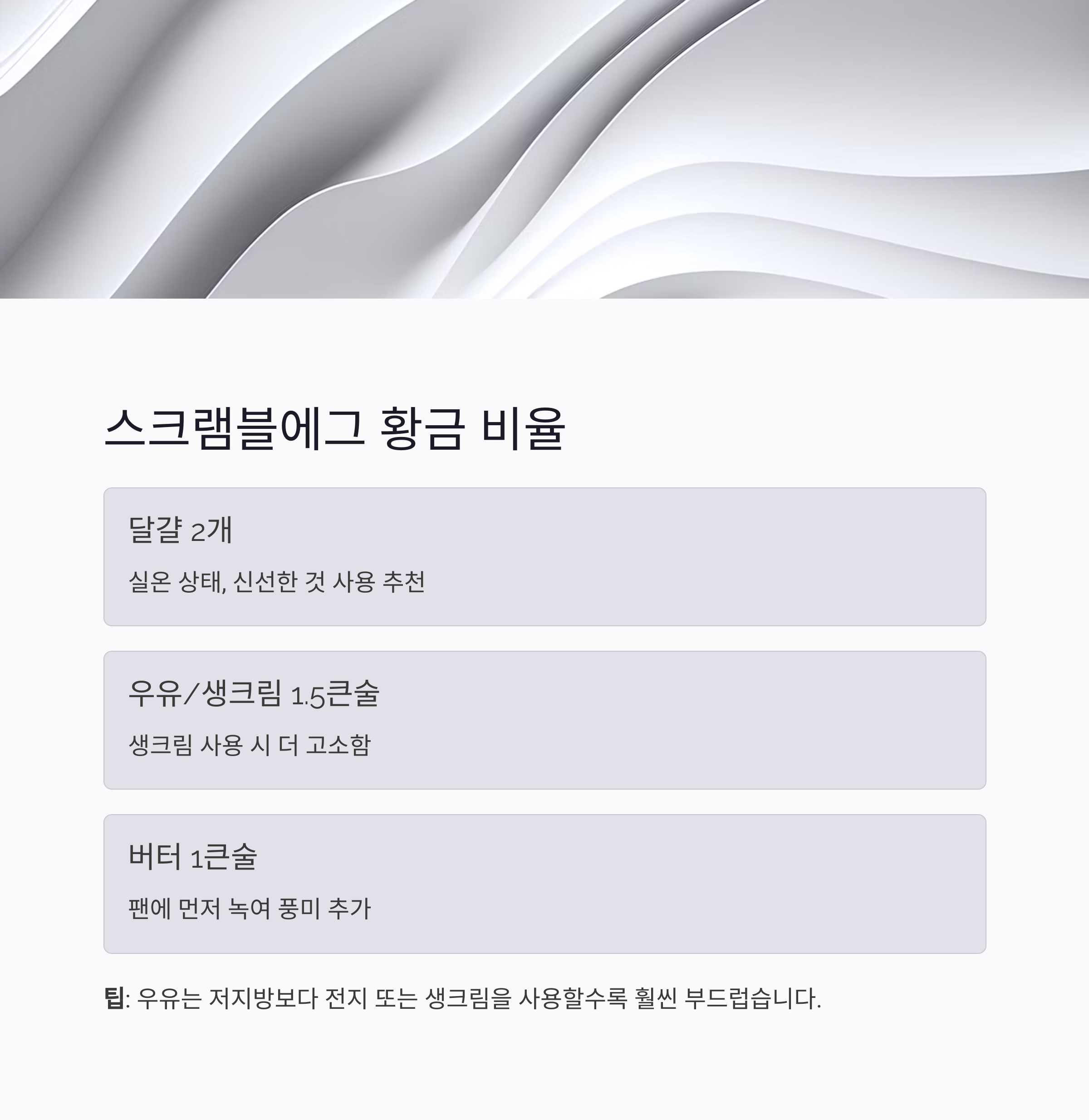 달걀과 우유(또는 크림)의 황금 비율을 정확히 맞추는 것이 핵심입니다.