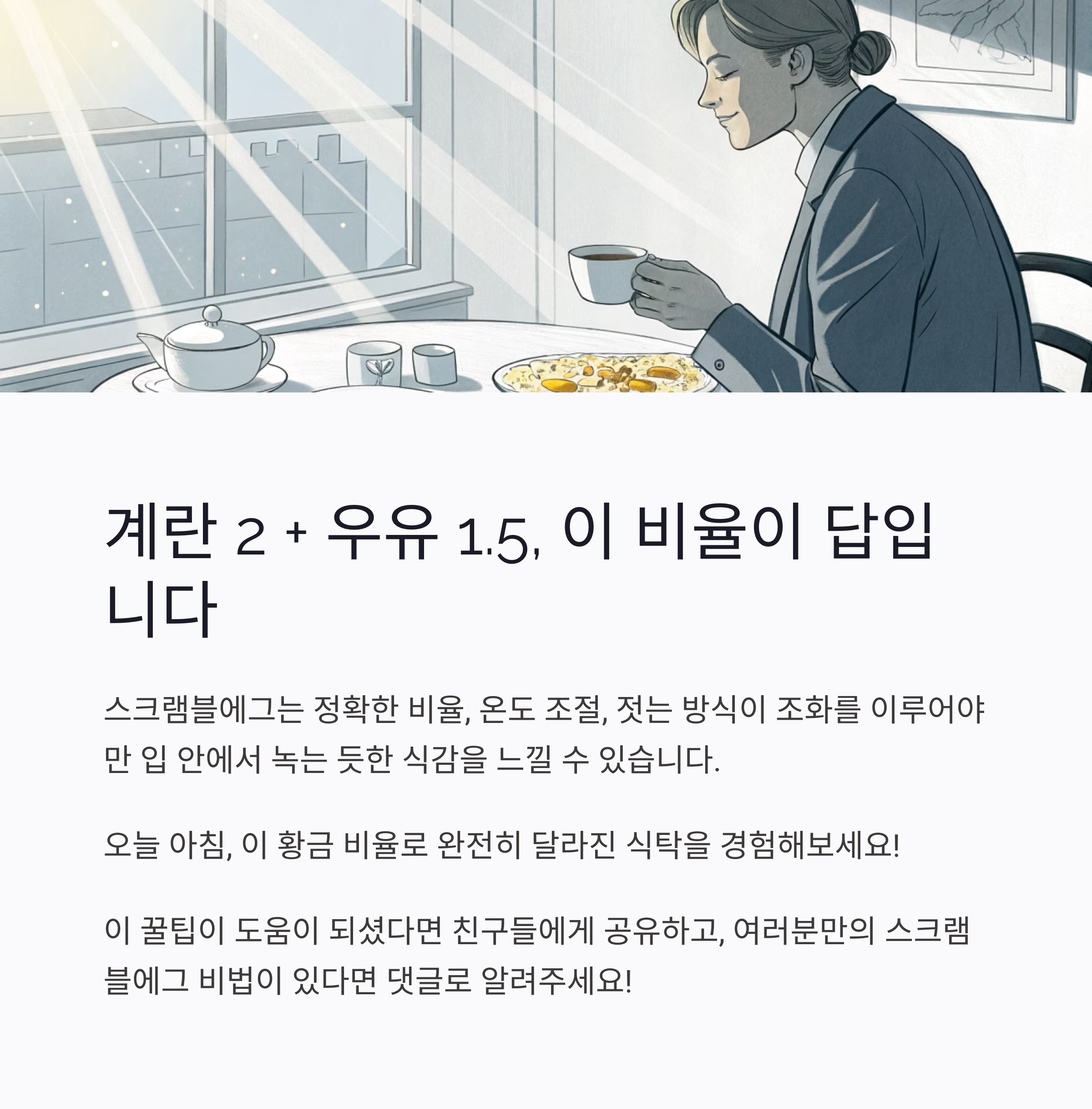 퍼석한 계란은 이제 그만! 부드럽고 촉촉한 스크램블의 황금 비율 공개
