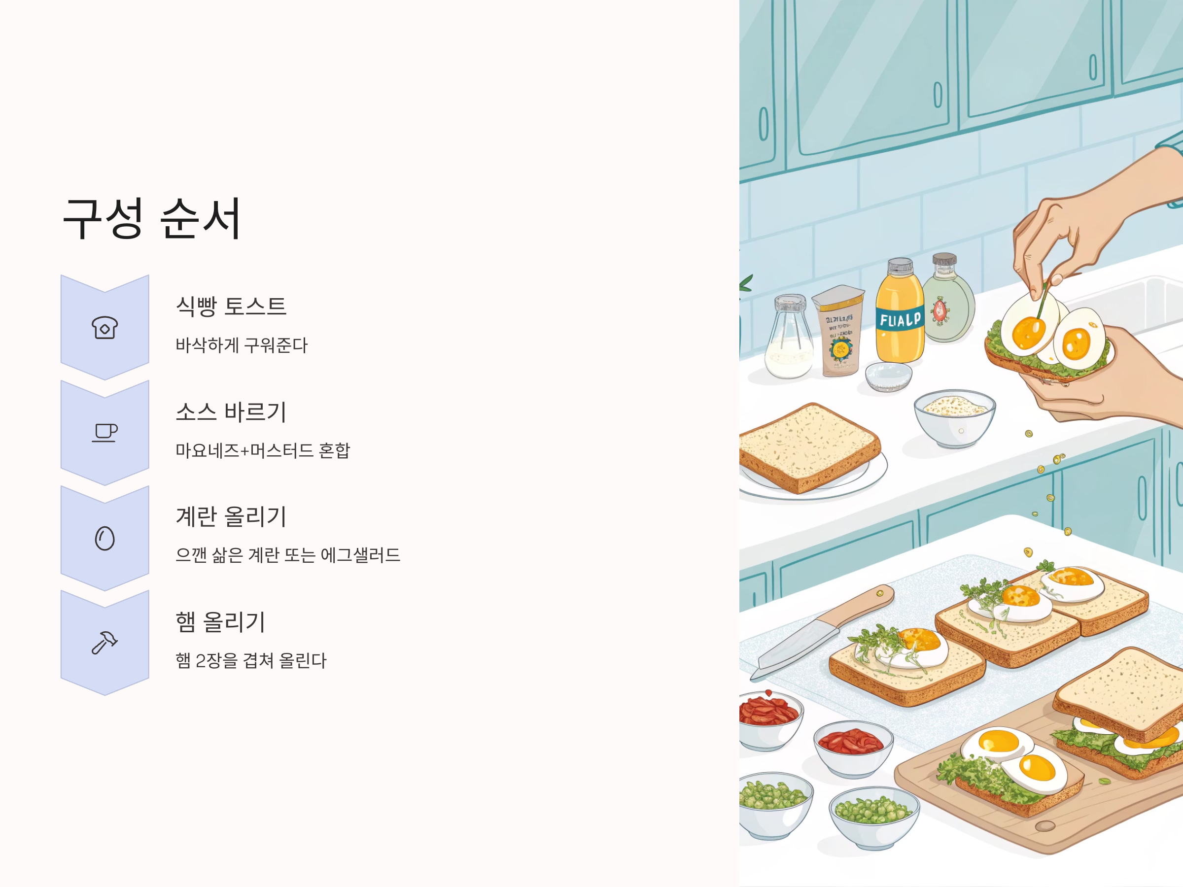이번 글에서는 누구나 맛있게 즐길 수 있는 계란+햄 샌드위치의 황금 비율과 추천 재료, 구성 순서까지 자세히 소개해 드립니다.