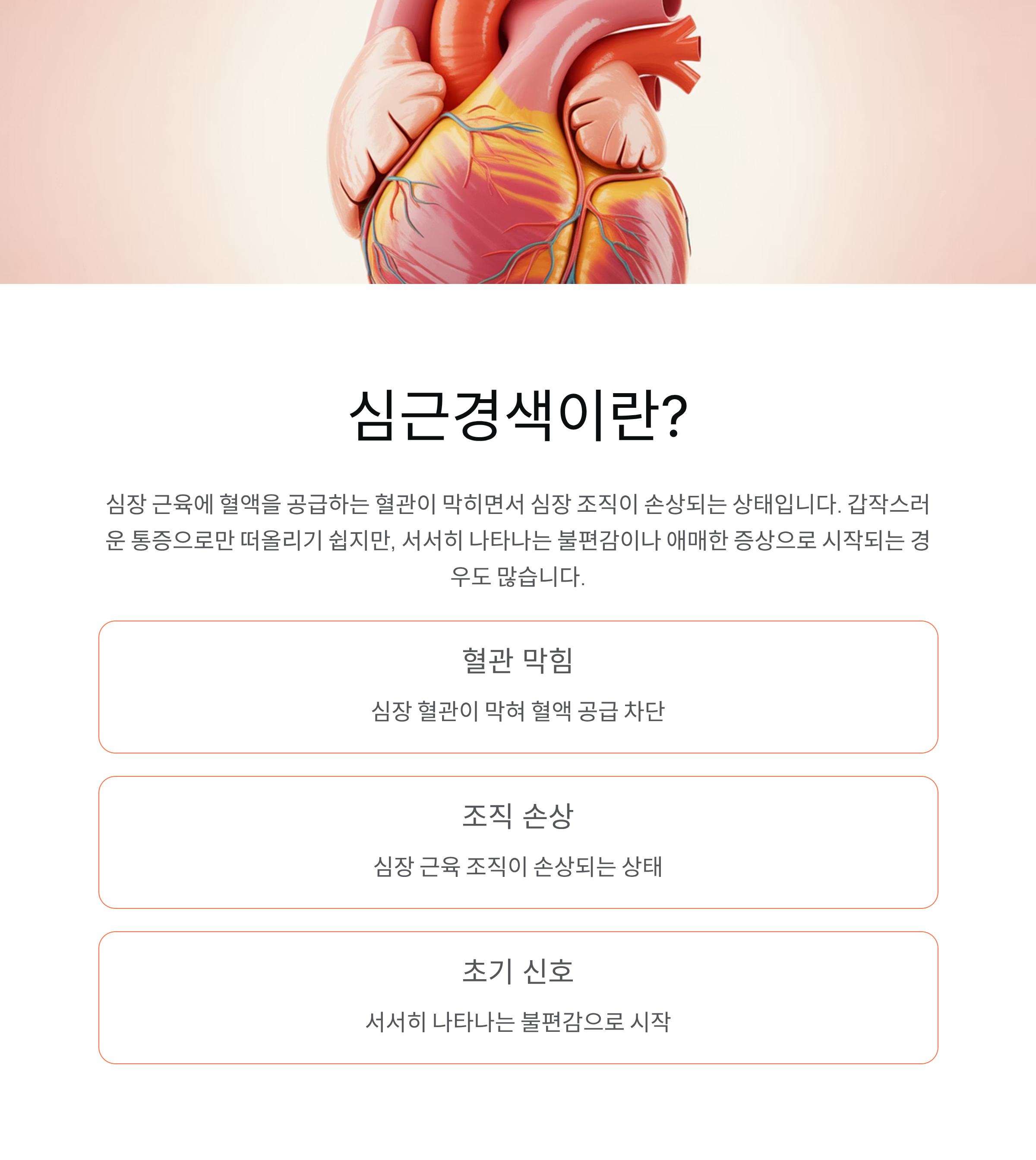 심근경색은 심장 근육에 혈액을 공급하는 혈관이 막히면서 심장 조직이 손상되는 상태를 말합니다. 갑작스러운 통증으로만 떠올리기 쉽지만, 실제로는 서서히 나타나는 불편감이나 애매한 증상으로 시작되는 경우도 있습니다. 이 때문에 초기 신호를 놓치기 쉬운 질환 중 하나로 꼽힙니다.