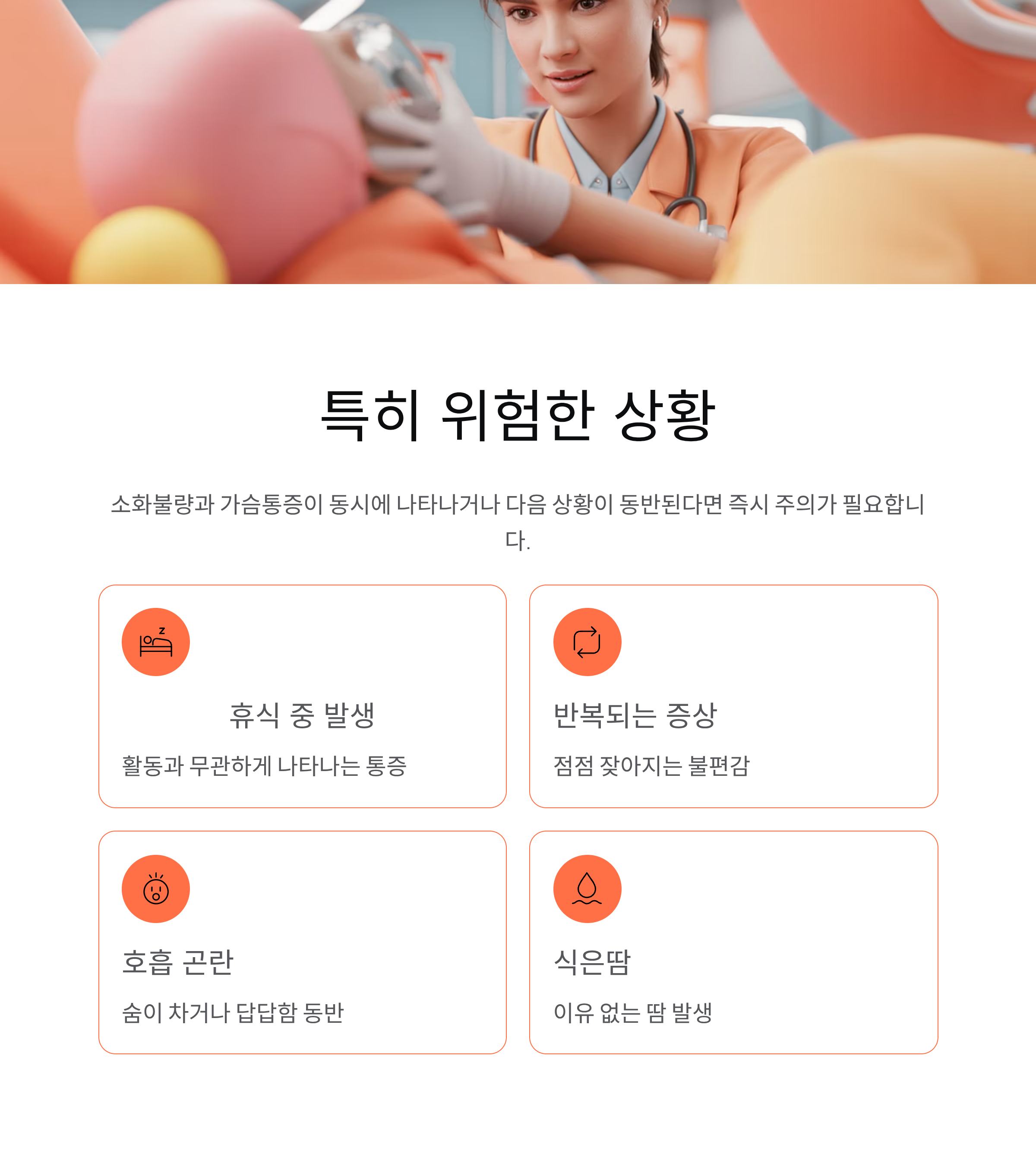 소화불량과 가슴통증이 동시에 나타난다면 특히 주의 깊게 살펴볼 필요가 있습니다. 식사와 무관하게 발생하거나, 평소 경험하지 못한 불편감이 갑자기 시작됐다면 몸의 이상 신호일 가능성을 배제하기 어렵습니다. 이런 경우에는 증상이 가볍다고 느껴져도 경과를 지켜보기보다 빠른 판단이 중요합니다.