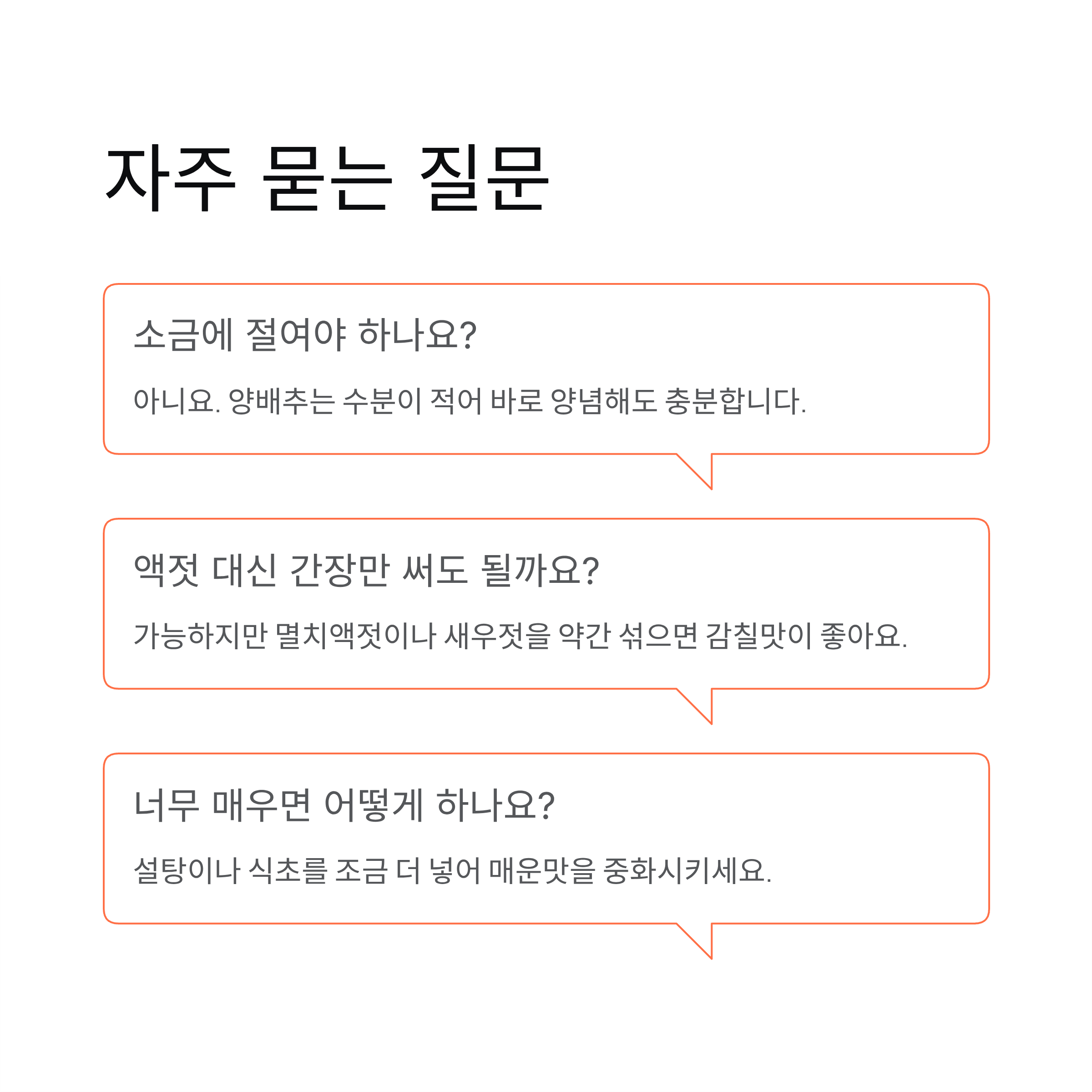 A. 아닙니다. 양배추는 수분이 적어 바로 양념해도 충분히 맛있습니다.