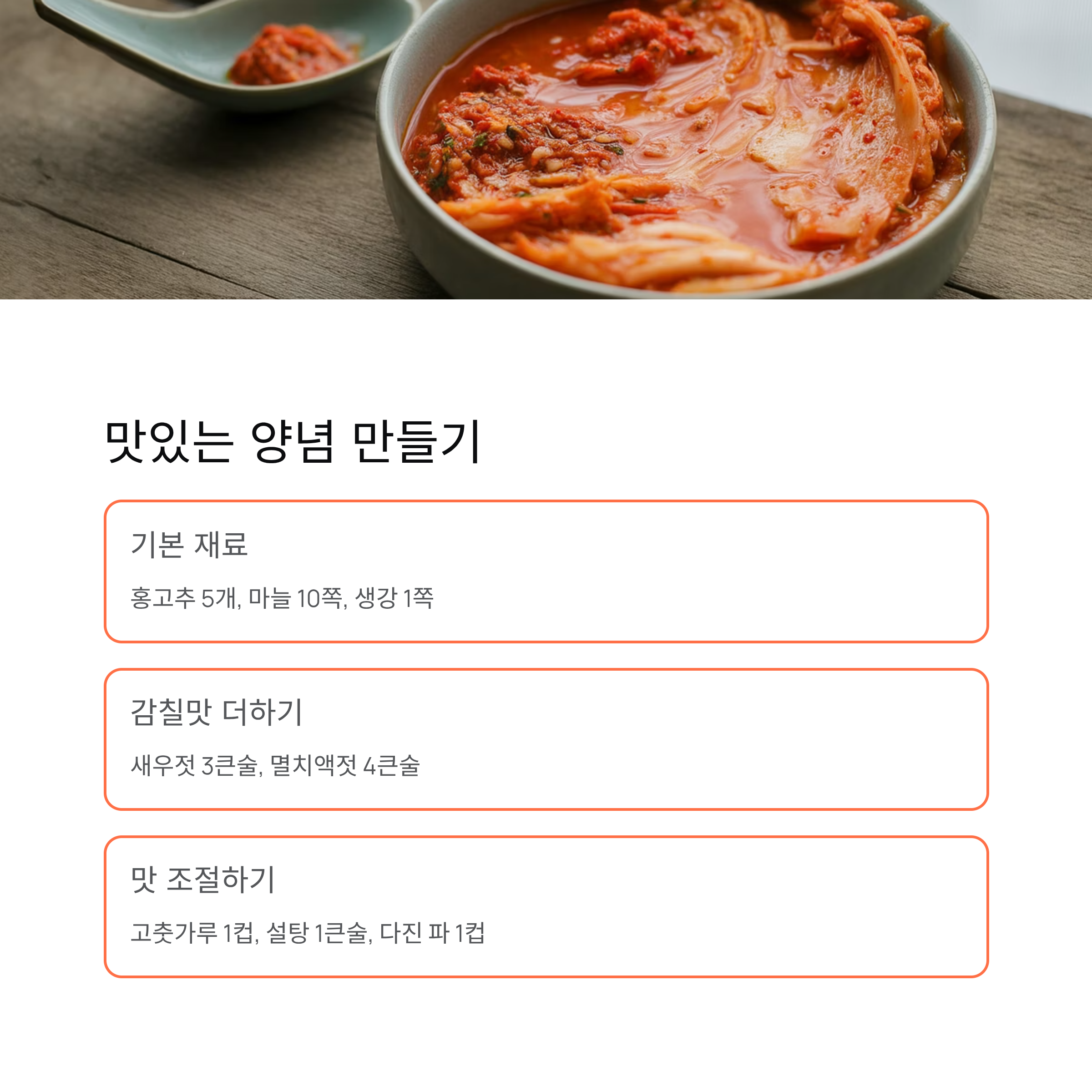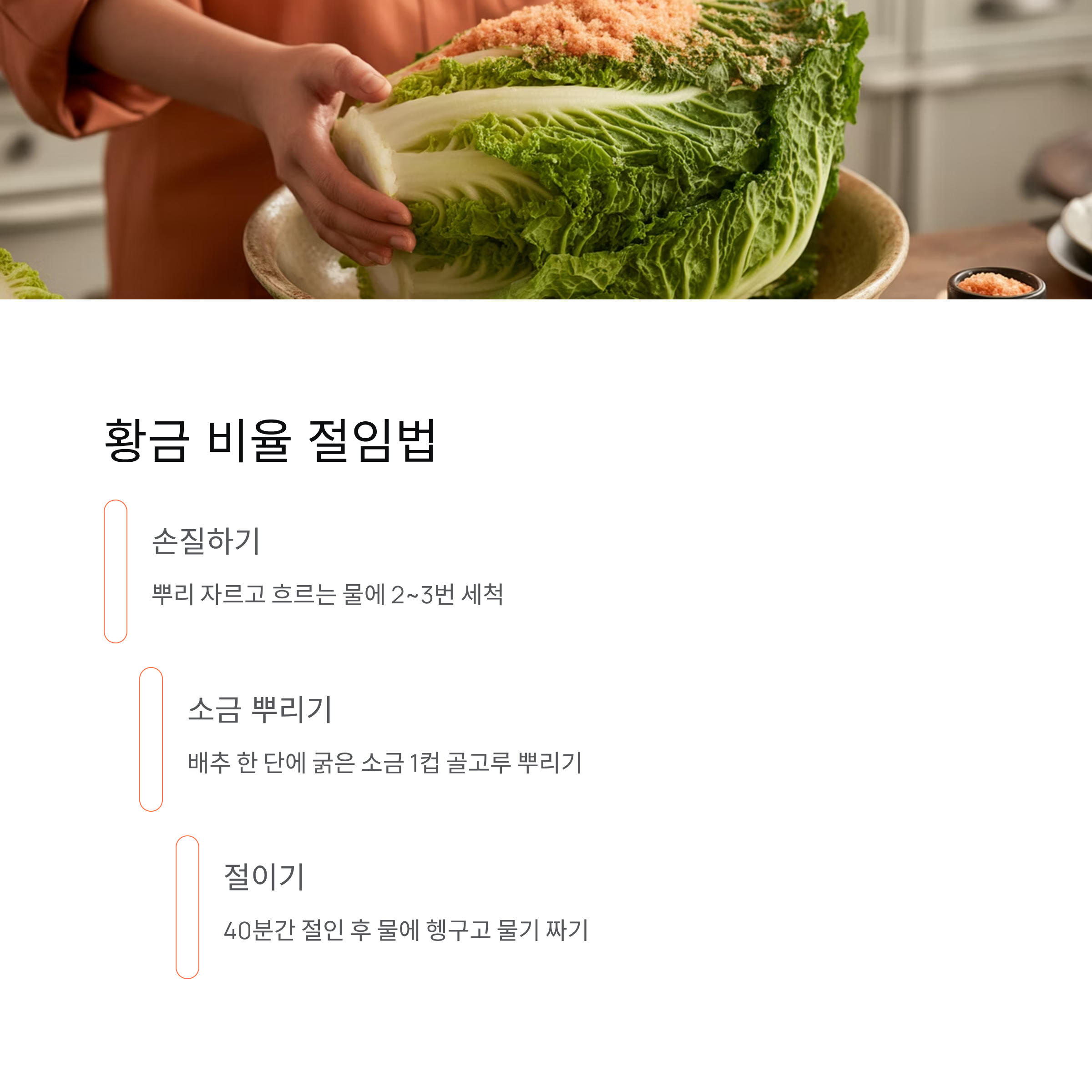 재료 손질부터 절이기, 양념 만들기, 보관법까지 꼼꼼히 안내드립니다.
