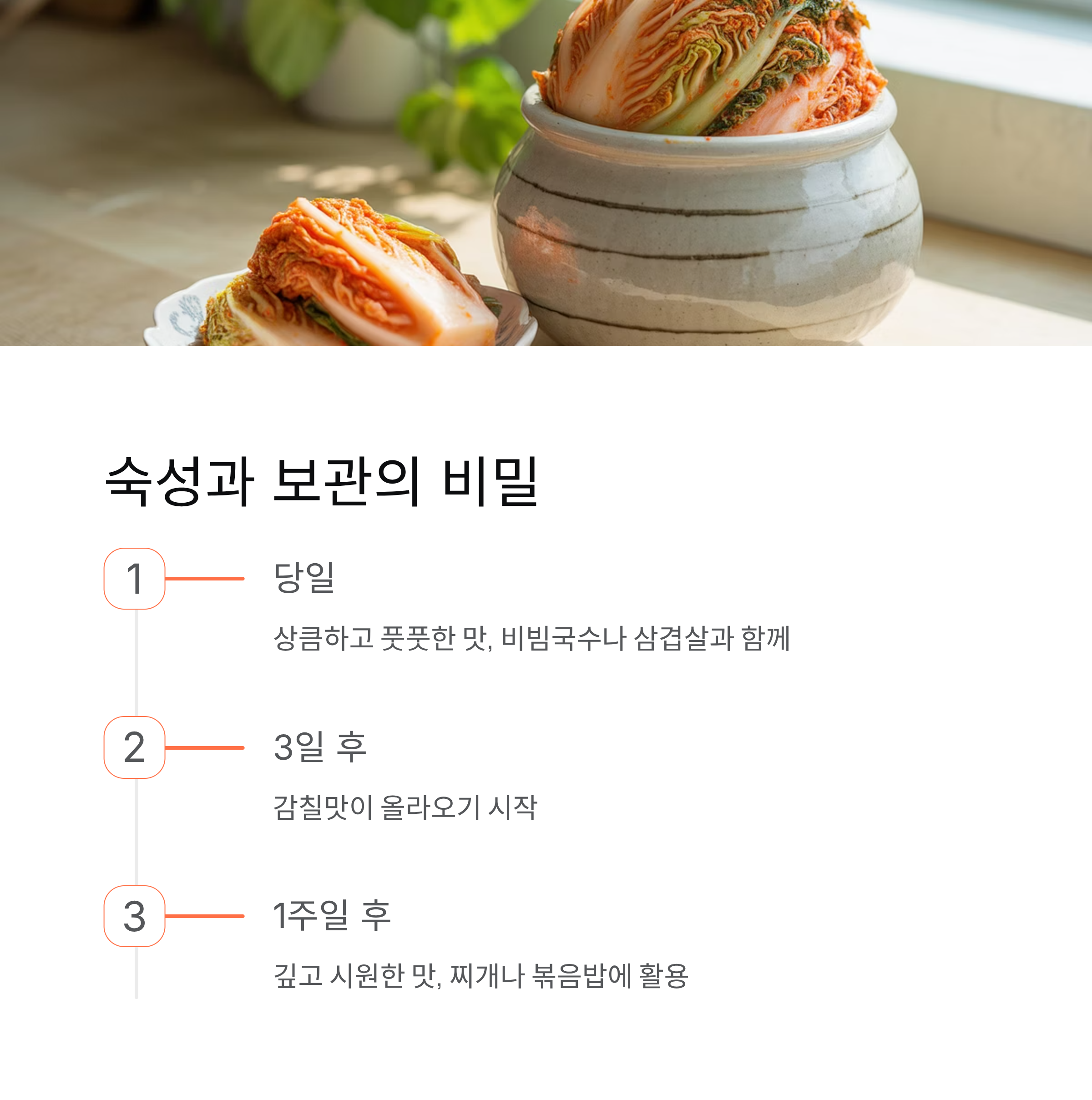 숙성 후에는 찌개, 볶음밥, 김치전 등에 활용하면 맛이 깊어집니다.