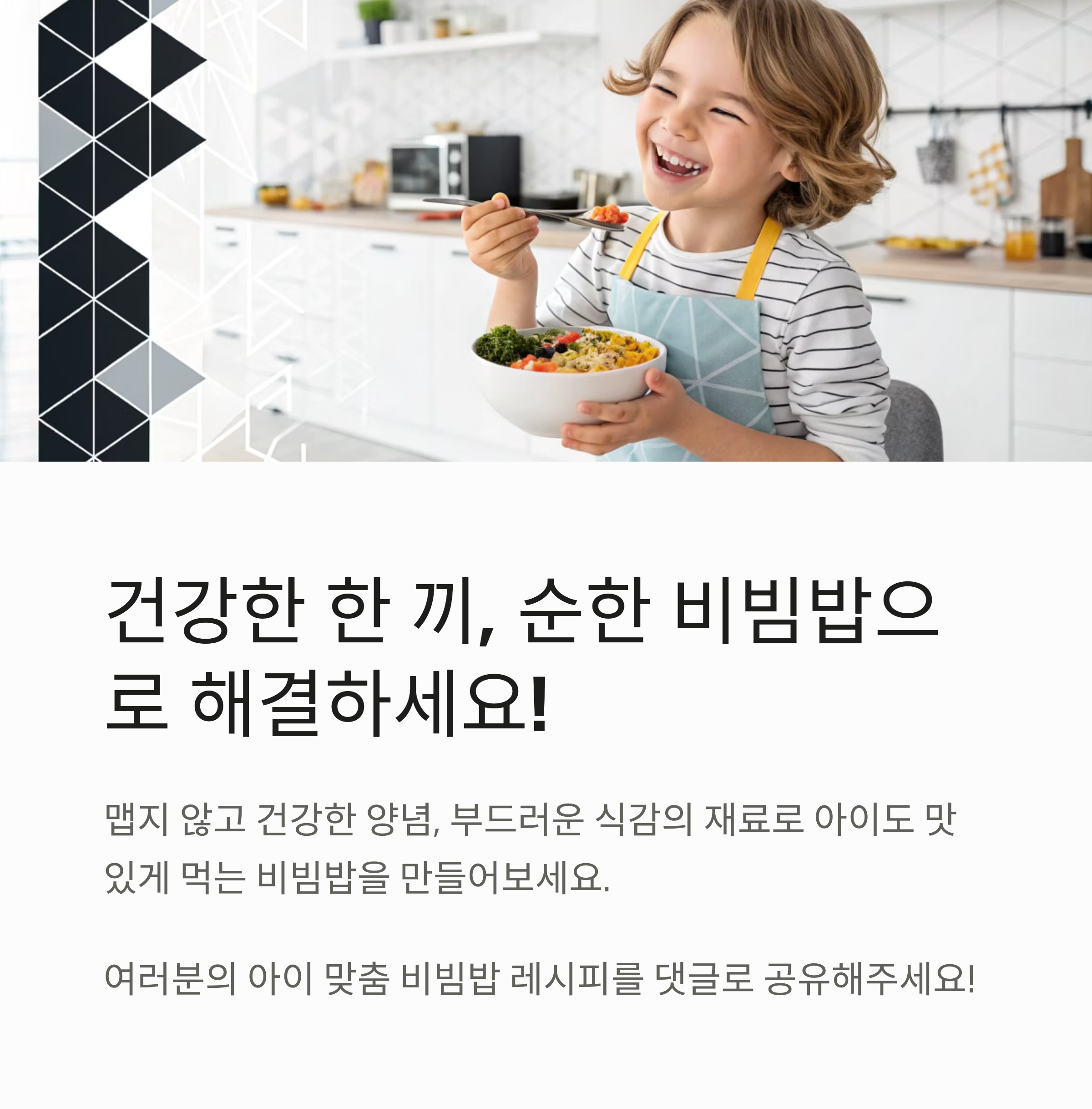 맵지 않고 부드러운 맛으로, 편식 걱정 없는 우리 아이 맞춤 비빔밥