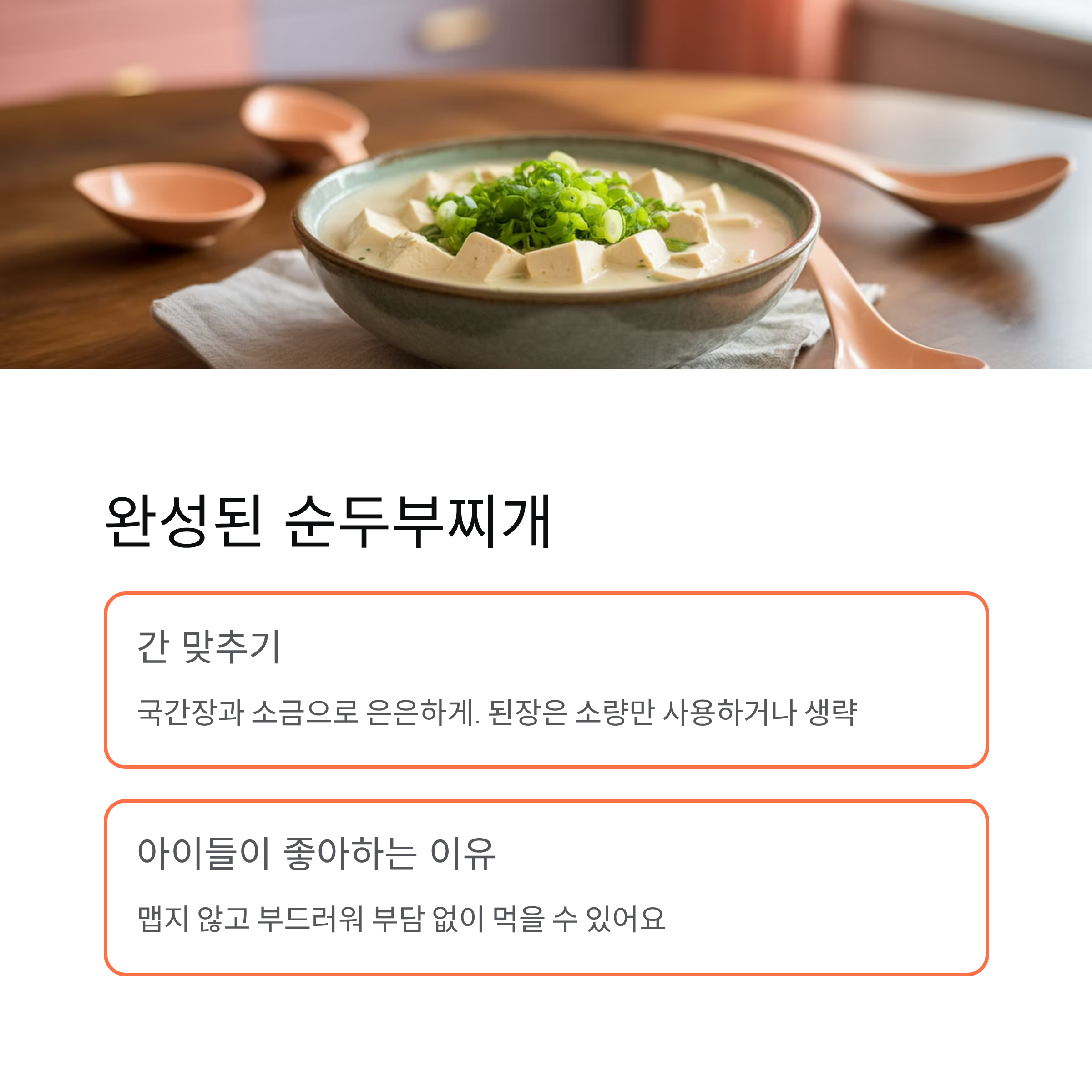 순두부찌개 하면 빨갛고 얼큰한 맛이 떠오르지만, 아이들에게는 매운맛이 부담스러울 수 있습니다.