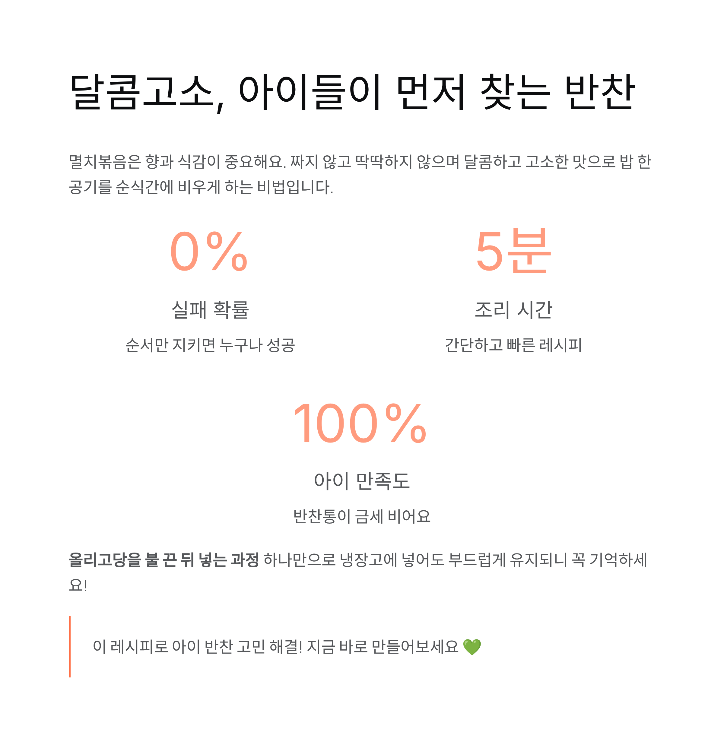 결론 : 달콤고소, 아이들이 먼저 찾는 반찬