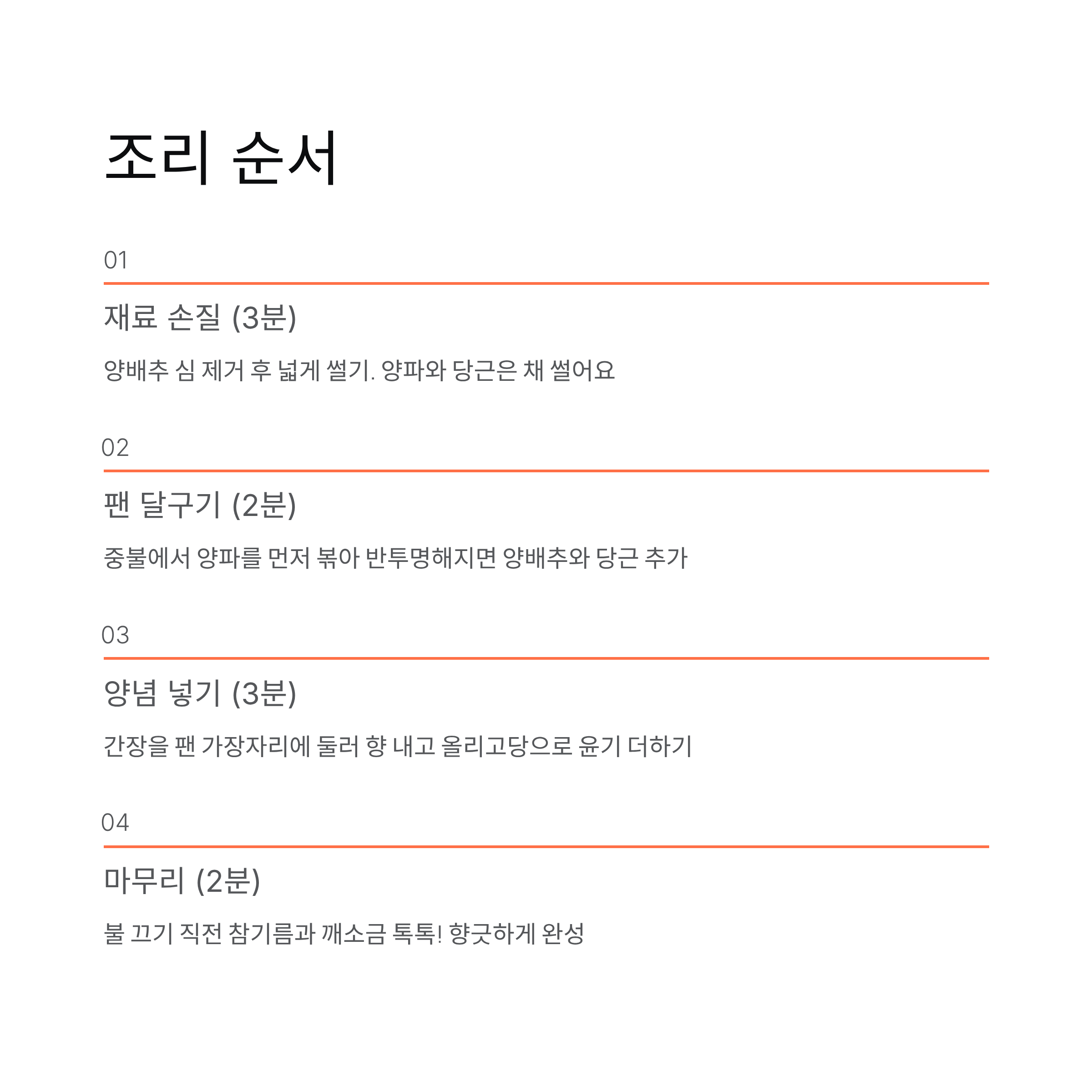 | 마무리 | 2분 | 참기름은 마지막에 |
