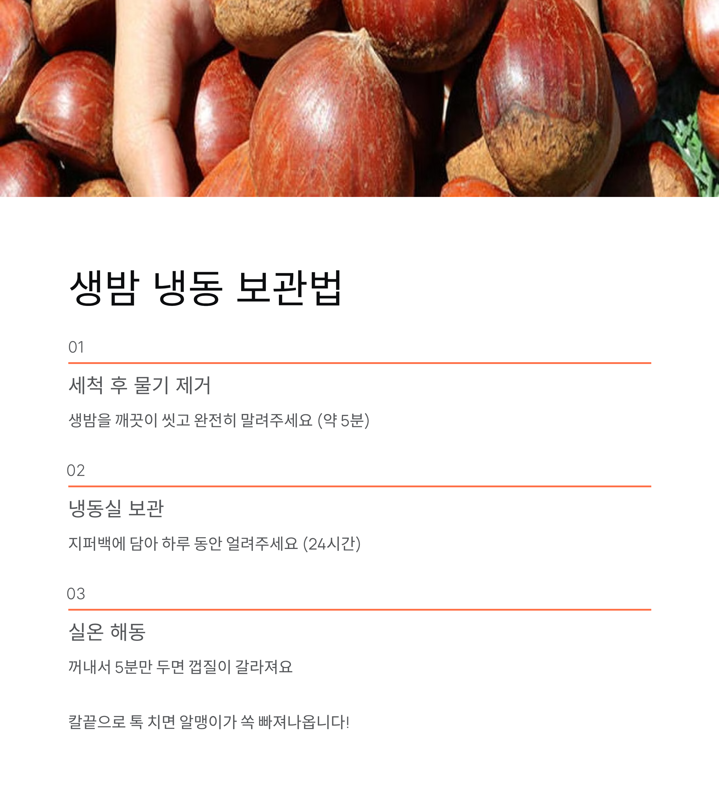 2. 생밤은 냉동실에 하루만 넣어보세요