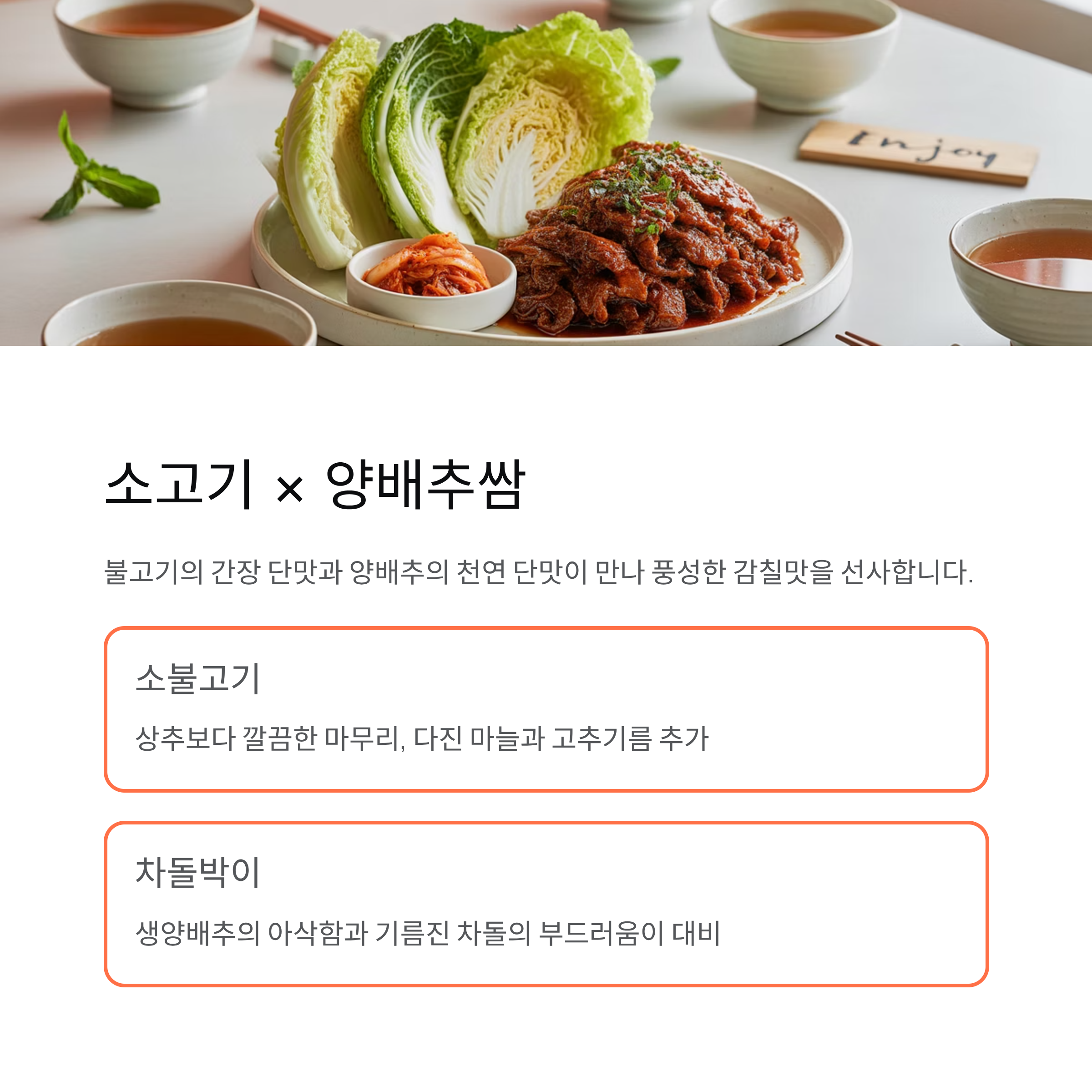 차돌박이와 생양배추쌈, 식감의 진짜 매력