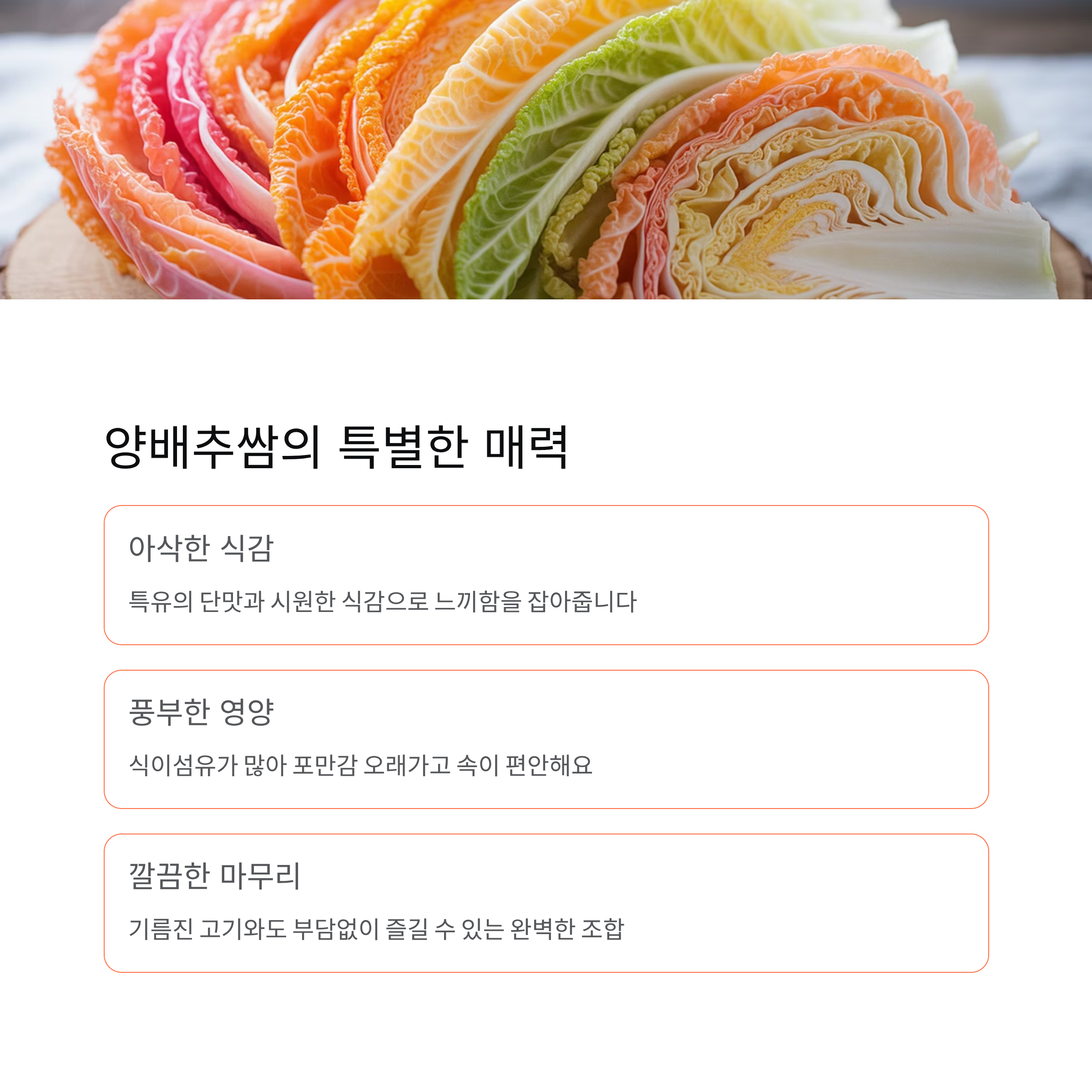양배추쌈의 핵심은 ‘깔끔함’이에요.