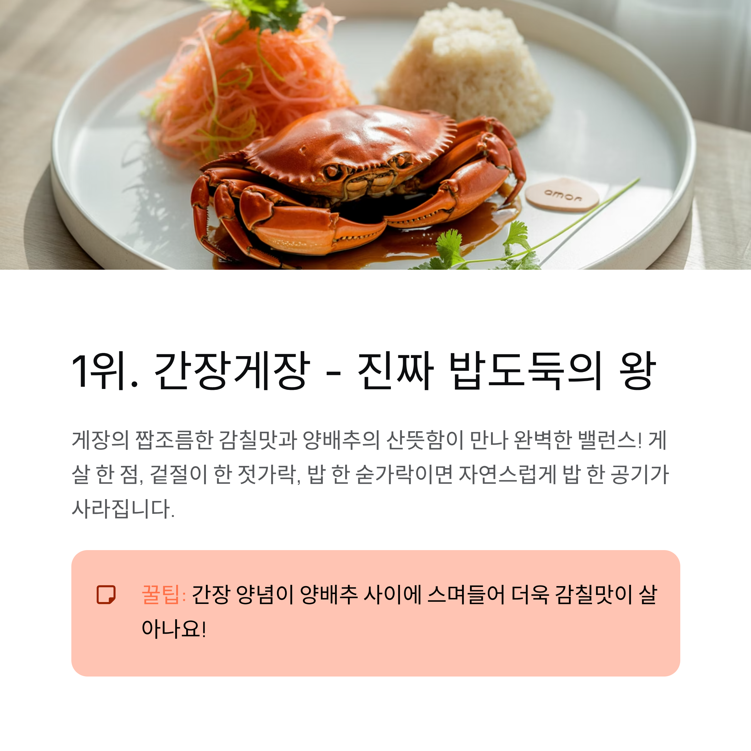 1위. 간장게장 – 진짜 밥도둑의 왕