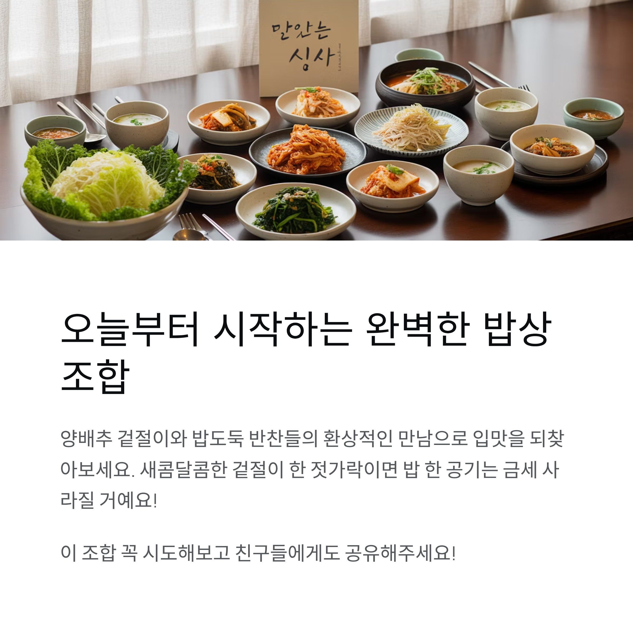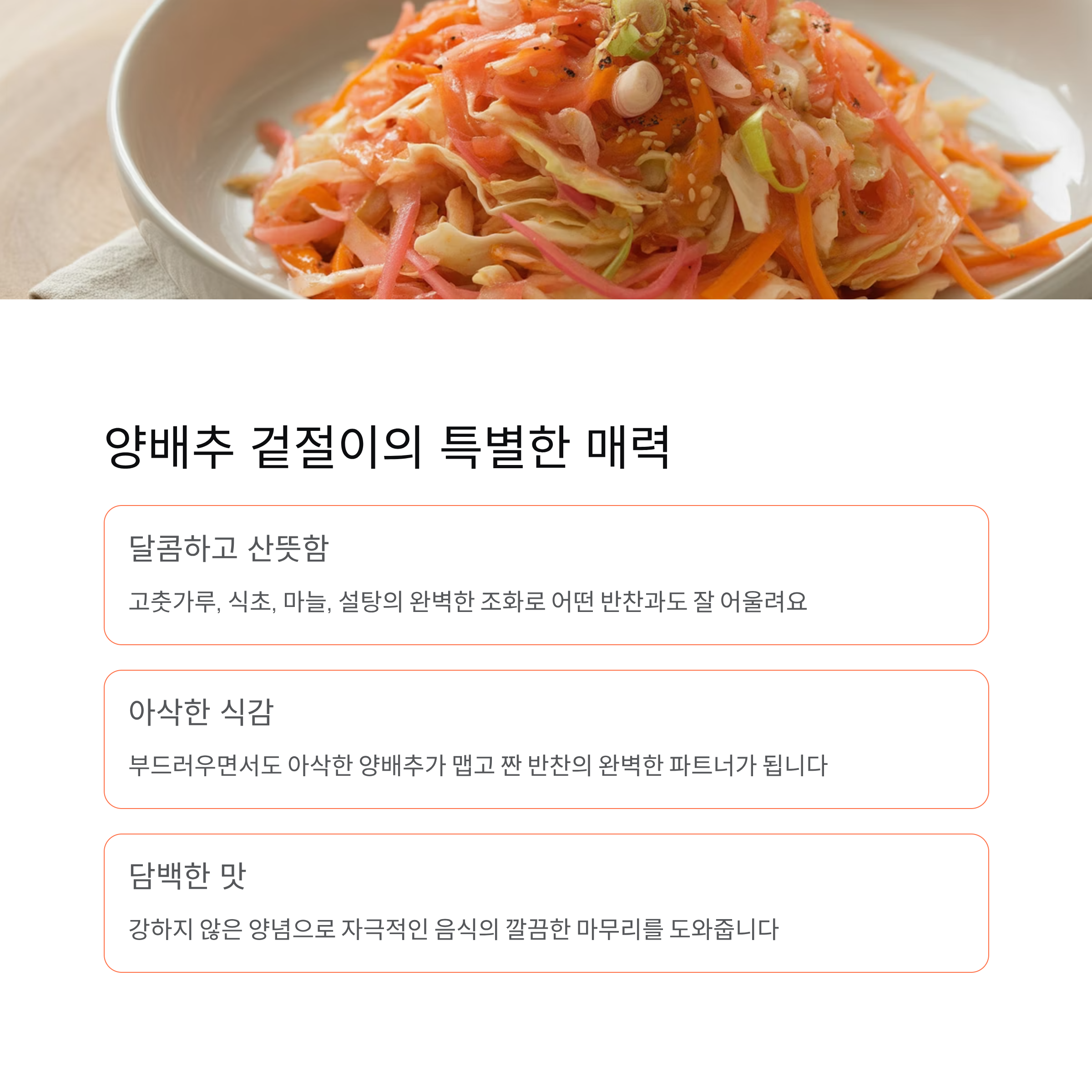 아삭한 양배추 겉절이와 찰떡궁합 반찬, 밥상 위 행복을 더하다