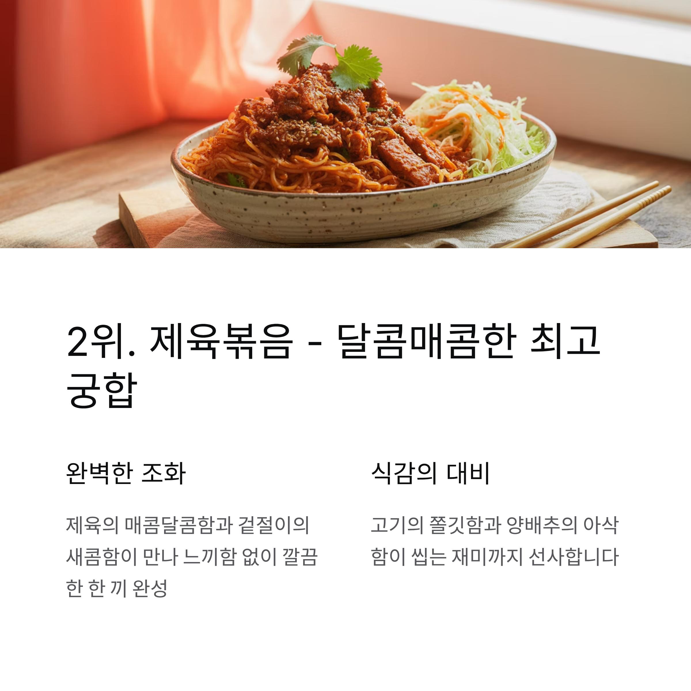 2위. 제육볶음 – 달콤매콤한 최고의 궁합