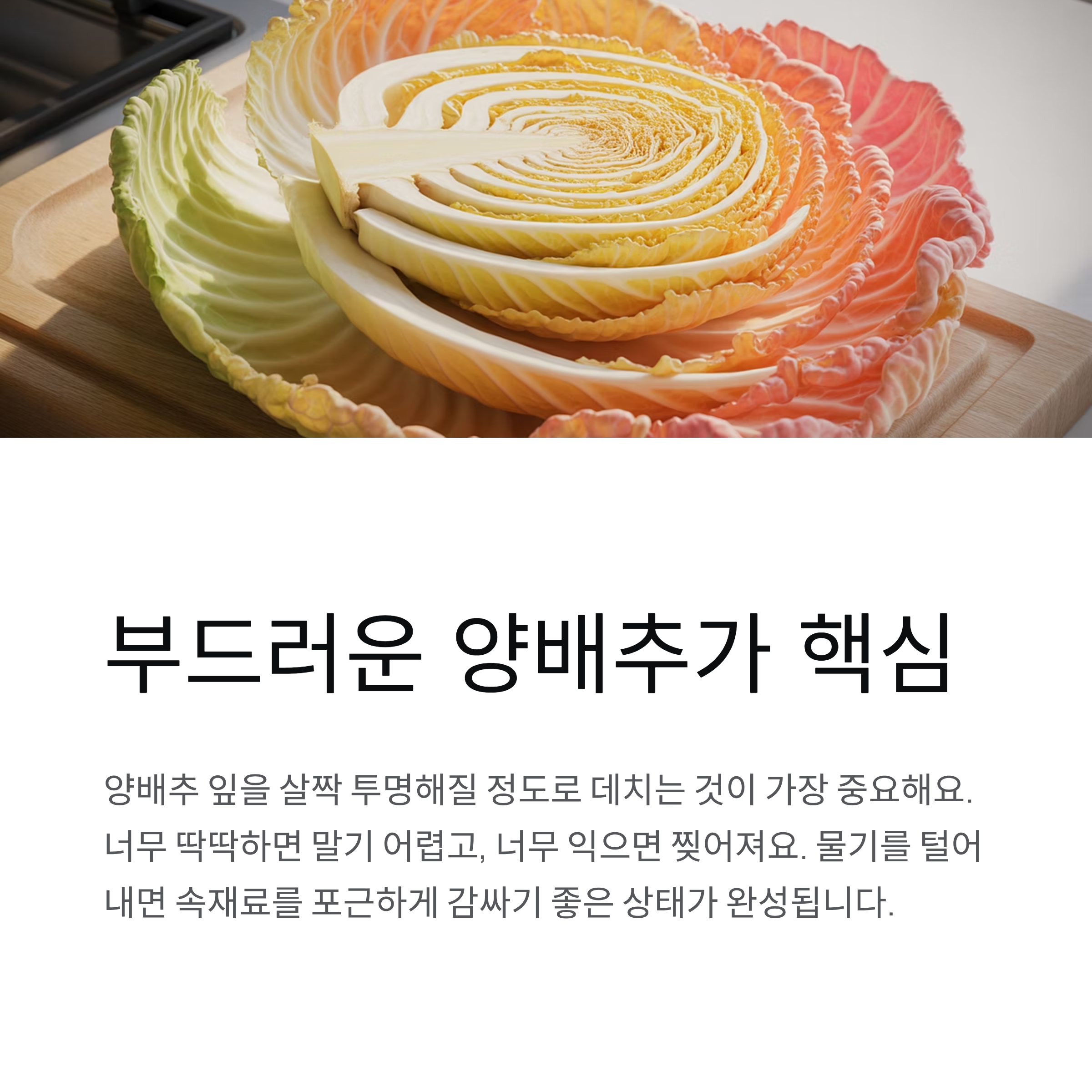 | 부드러운 양배추 | 포근한 식감 | 담백한 균형 |