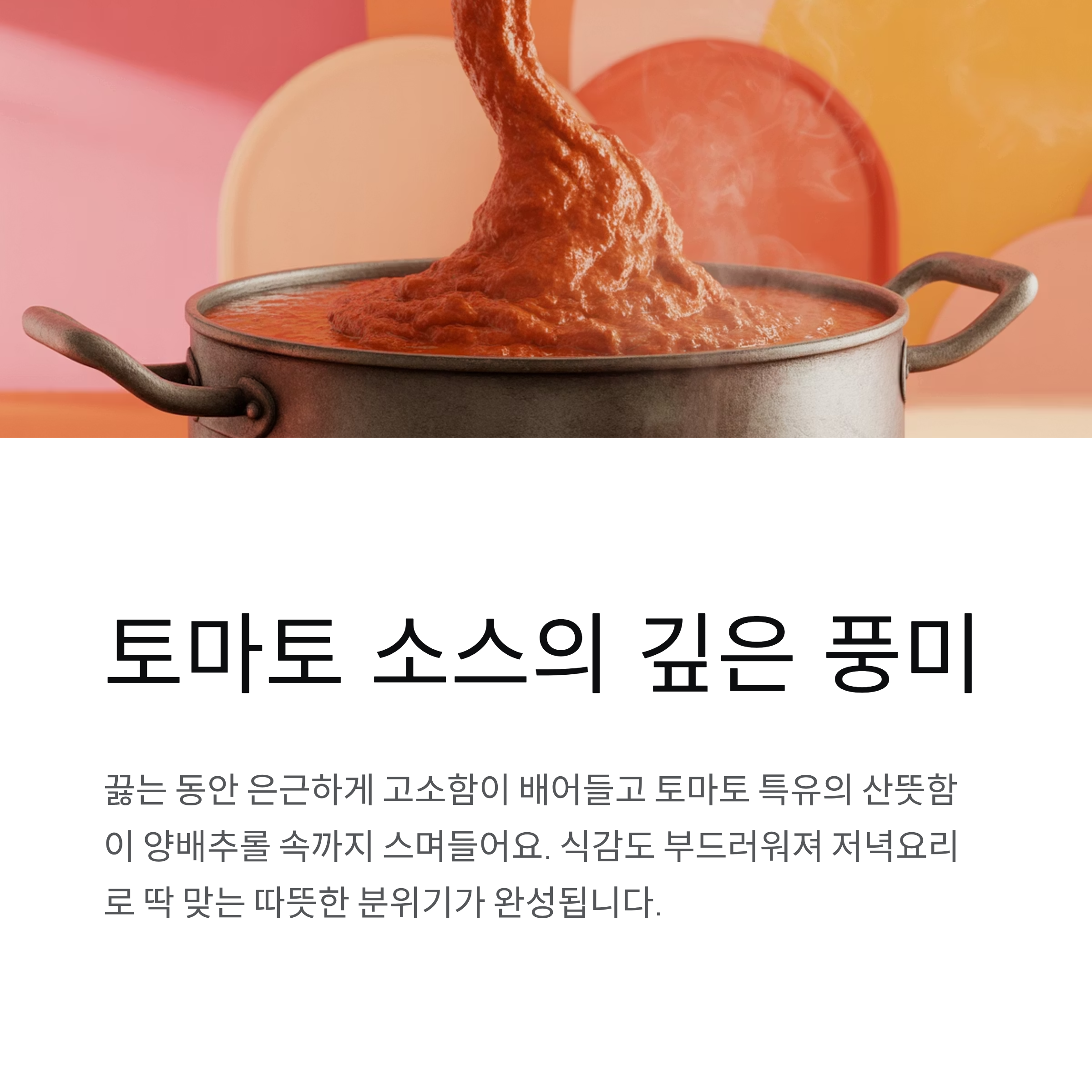 | 토마토 소스 | 산뜻한 풍미 | 든든한한끼 완성 |