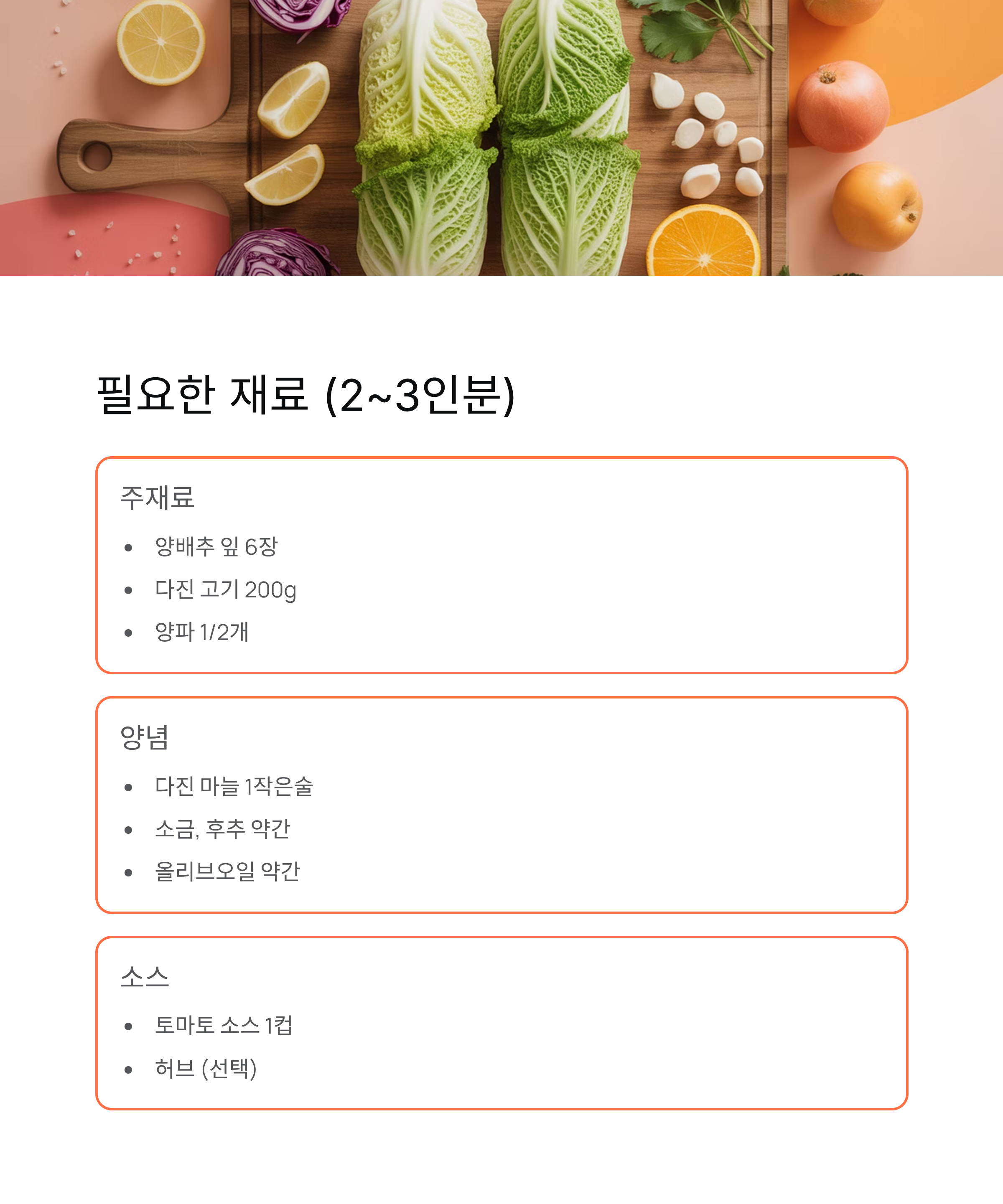 A. 필수는 아니지만, 토마토나 크림 소스를 함께 넣으면 양배추의 단맛이 더욱 살아납니다.