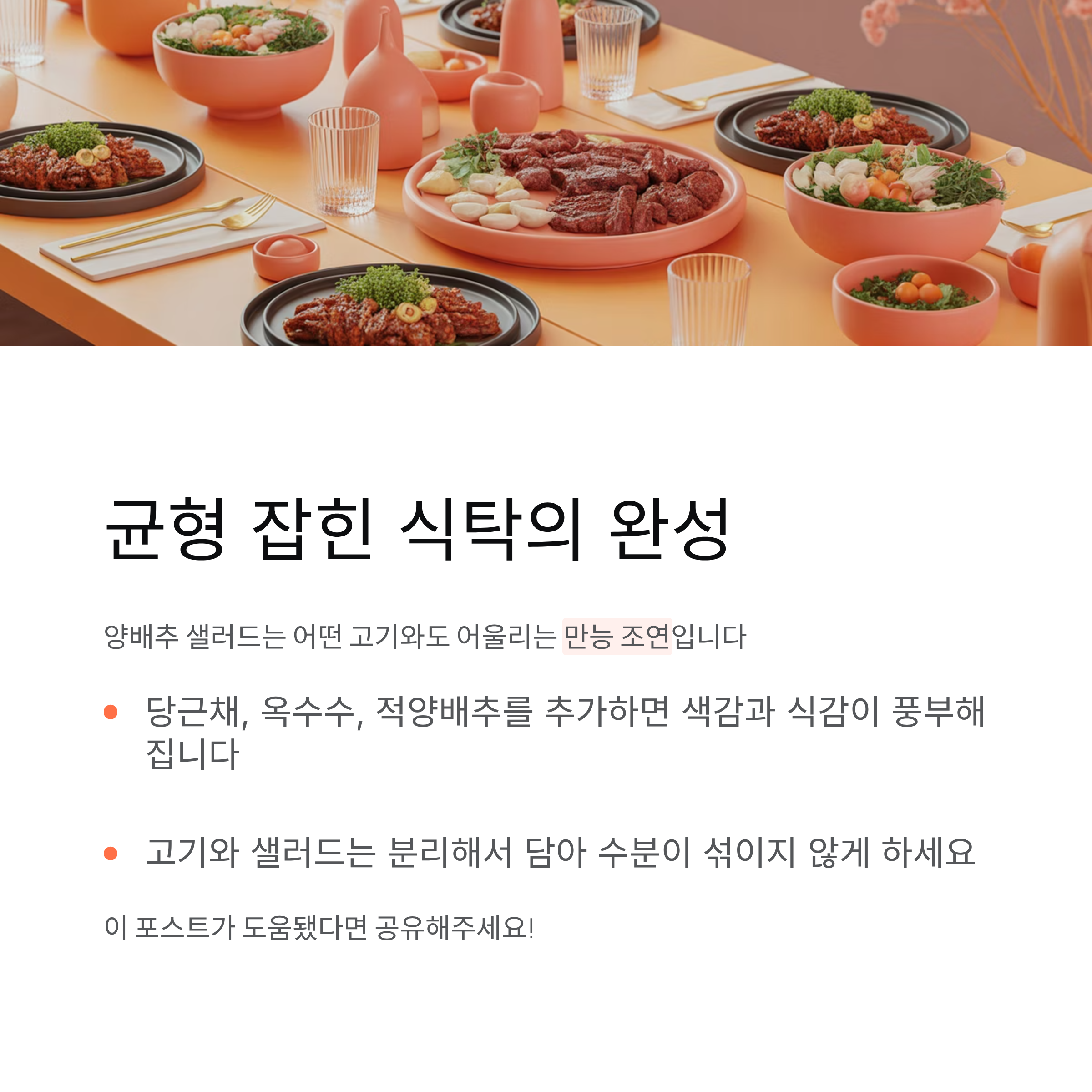 양배추샐러드, 고기요리추천, 식단조합, 요리팁, 가정식레시피, 건강한식탁