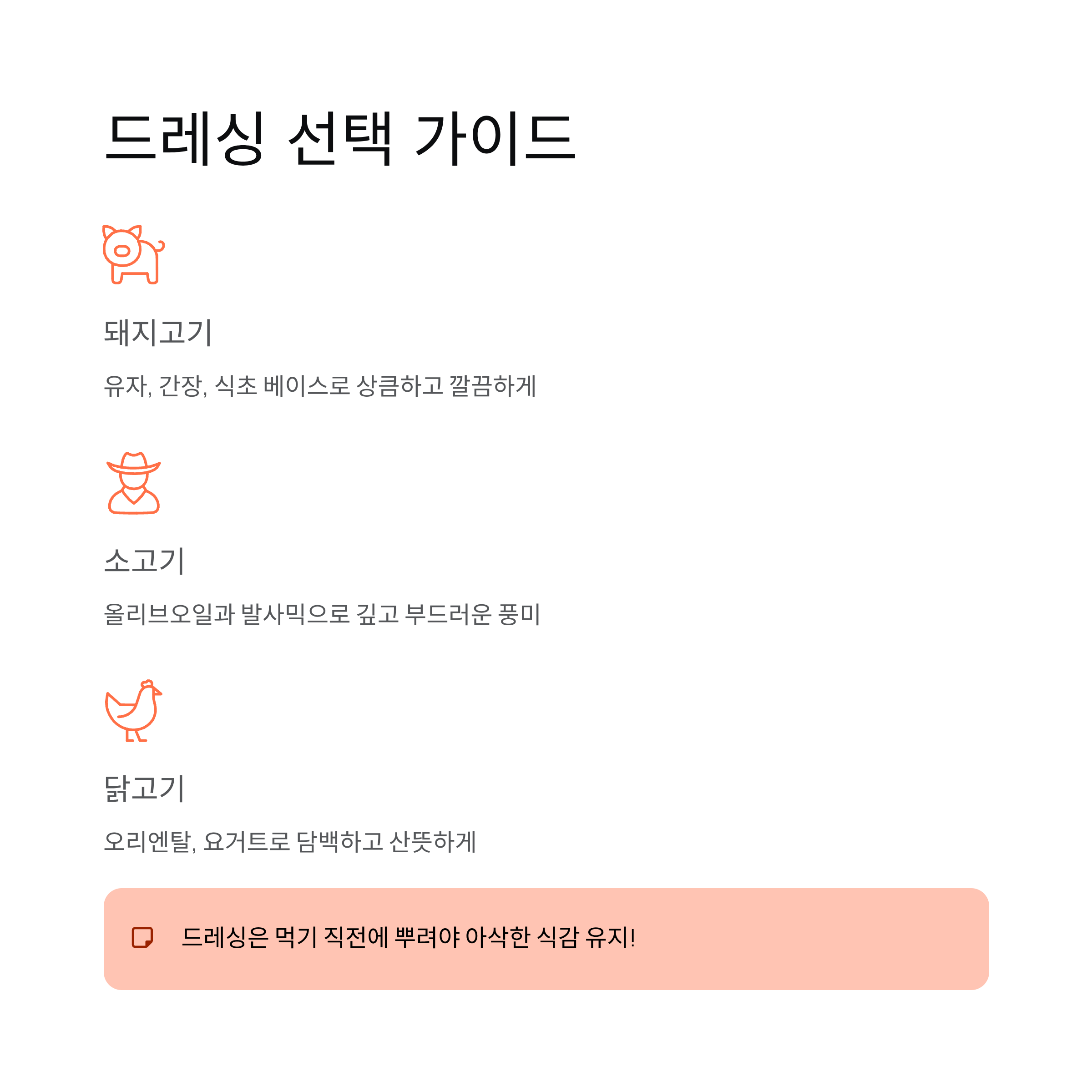 고기 종류 추천 드레싱 맛의 방향