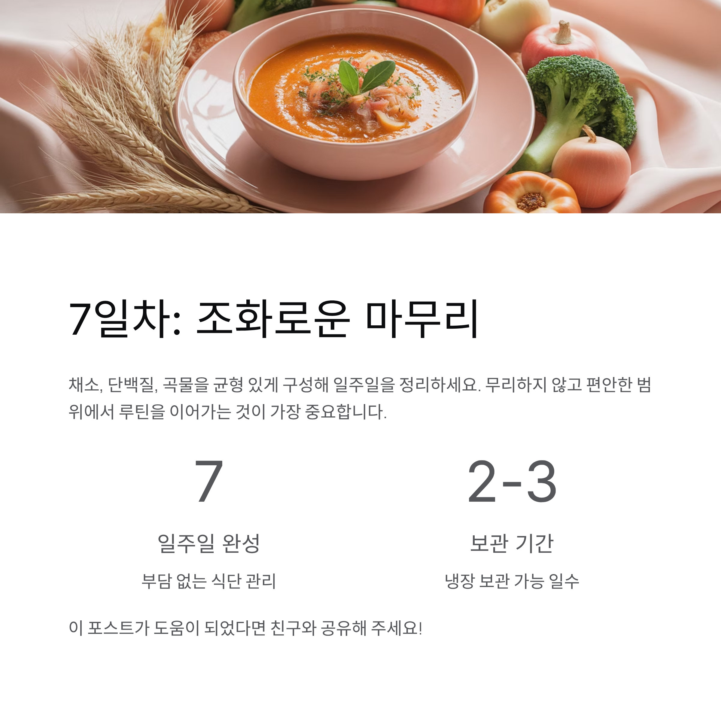 7일 차에는 전체 식단을 조화롭게 마무리하기