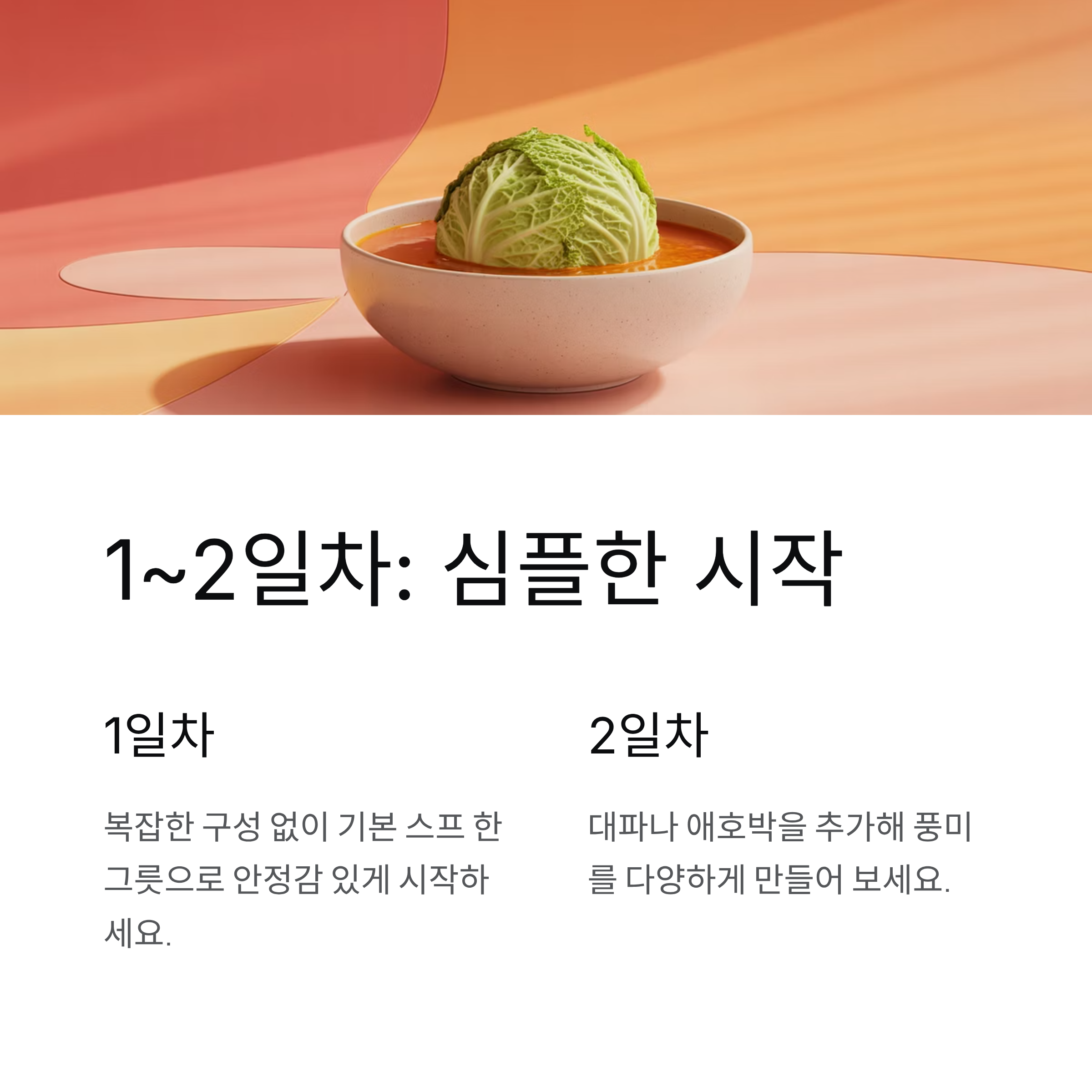 | 1일차 | 기본 양배추 스프 | 심플한 시작 |