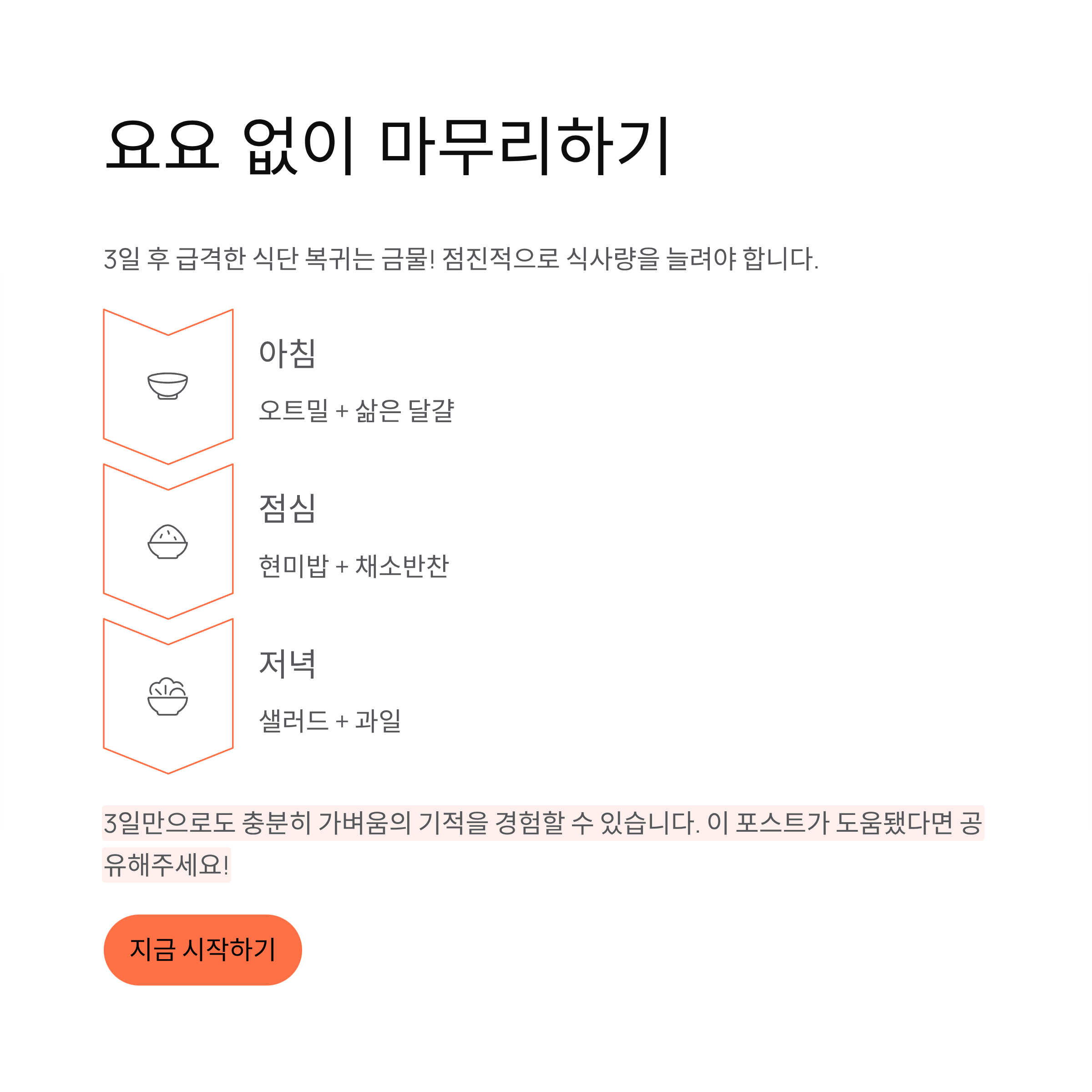 이렇게 점진적으로 식사량을 늘리면 요요 없이 몸을 안정적으로 유지할 수 있습니다.